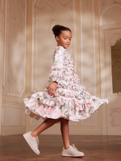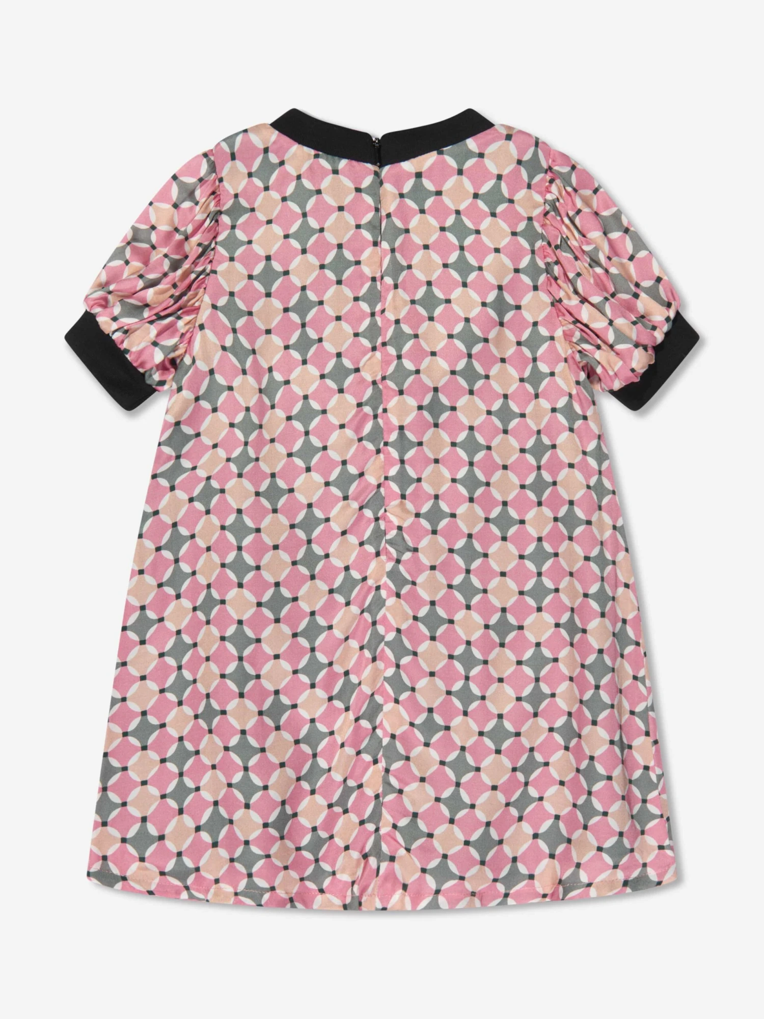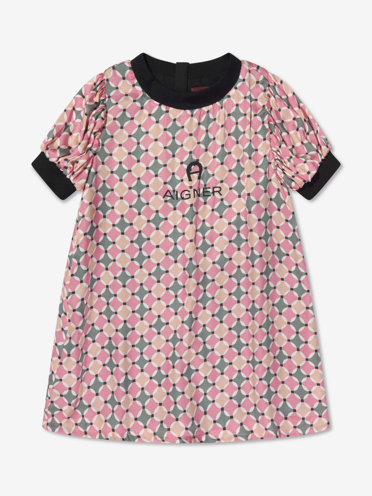 German luxury label Aigner project sophisticated technology and style into their refined aesthetics. This girls sachet pink dress is reflective of the label’s passion for innovative abstracts. Depicted in a satin geometric print with a black ribbed collar and short puffy elasticated sleeves. She will look and feel divine.