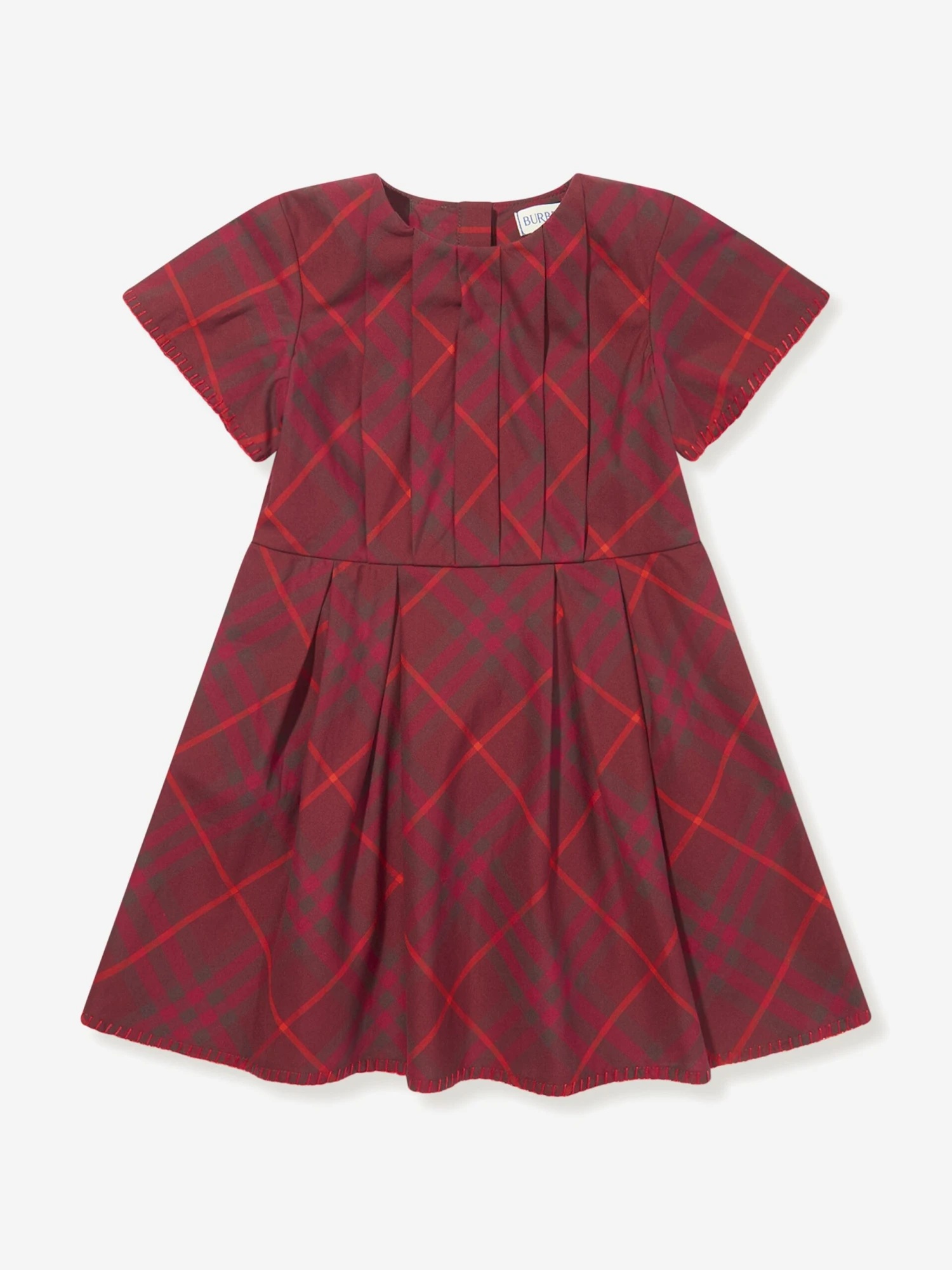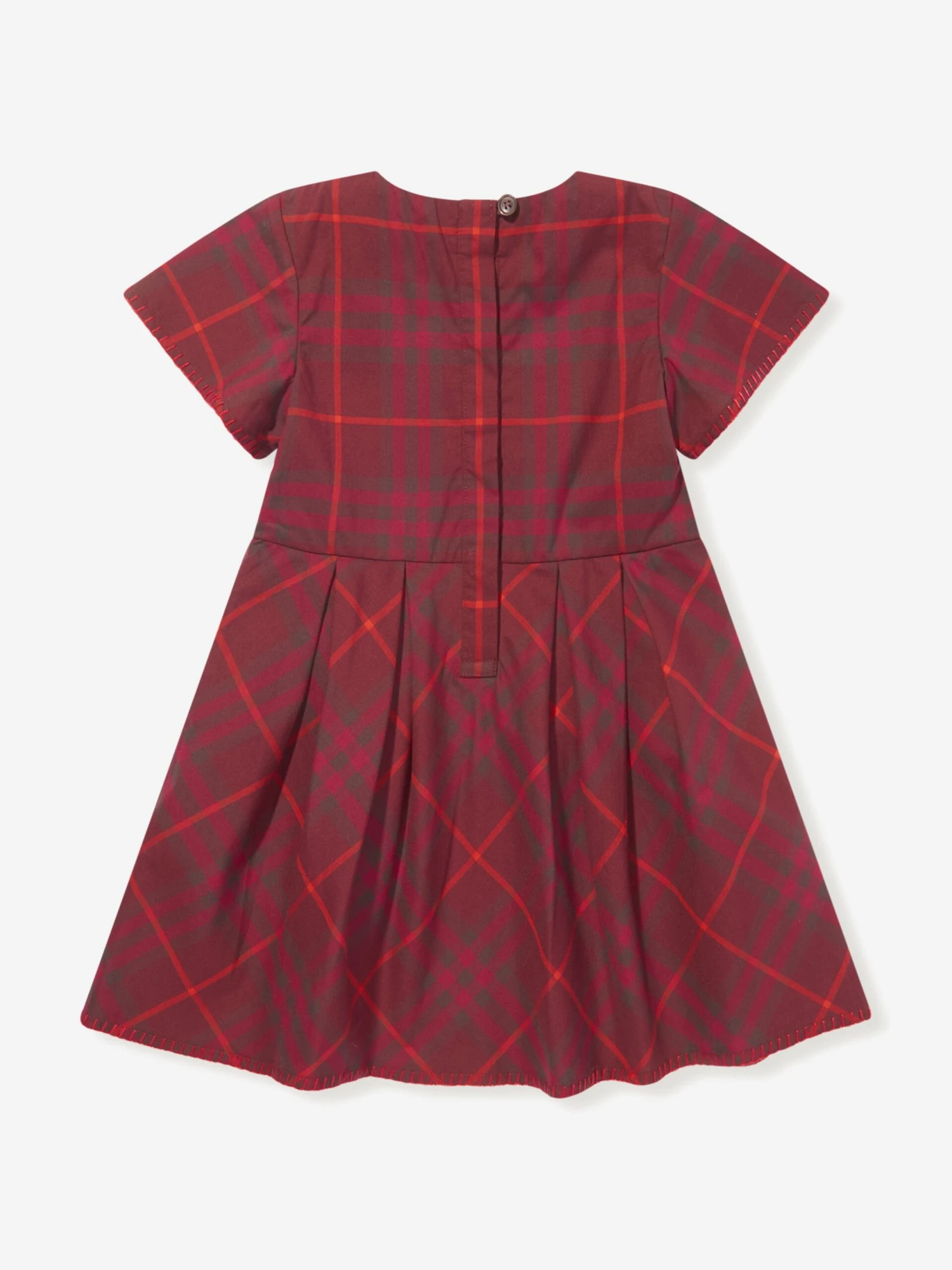 Daniel Lee reconceptualises the ideology of Burberry into fascinating portraits. This baby girls Gia claret check dress is reflective of the British label’s passion for innovative designs. Crafted in beautiful high quality material via short puff sleeves with front pleat details at the waist, a scoop back and contrast blanket stitching in pillar details at the cuffs and hem.