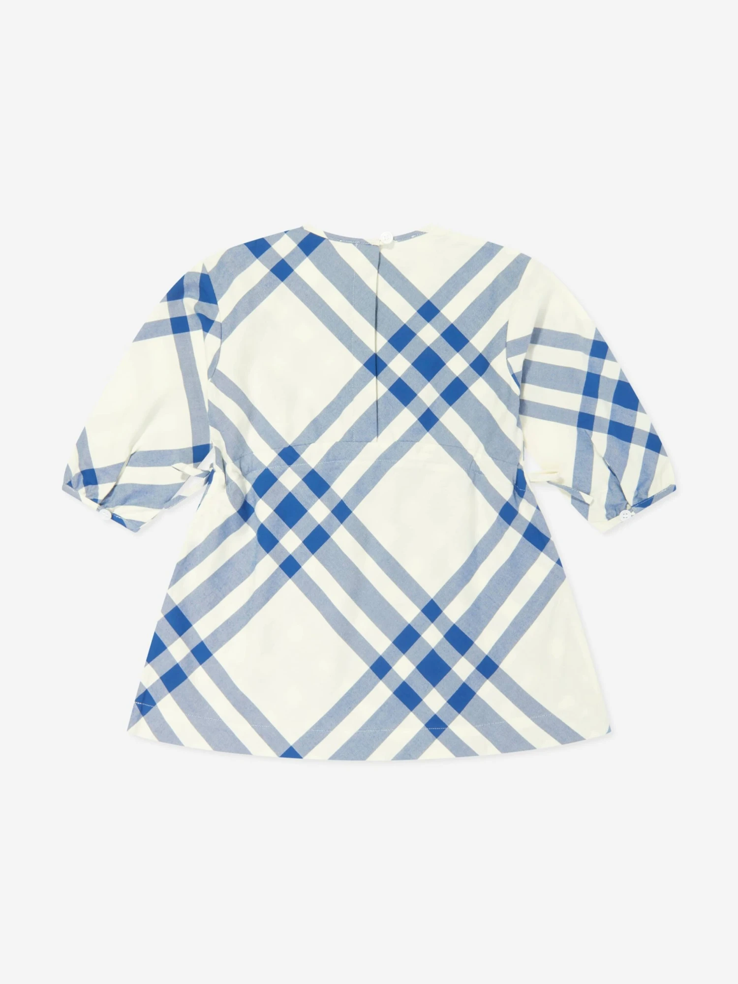 Daniel Lee reconceptualises the ideology of Burberry into fascinating portraits. This baby girls Trevelle salt check dress is reflective of the British label’s passion for innovative designs. Crafted in beautiful high quality blushed flannel material via an elasticated waistband with gathering, ties and cinched details at the cuffs.