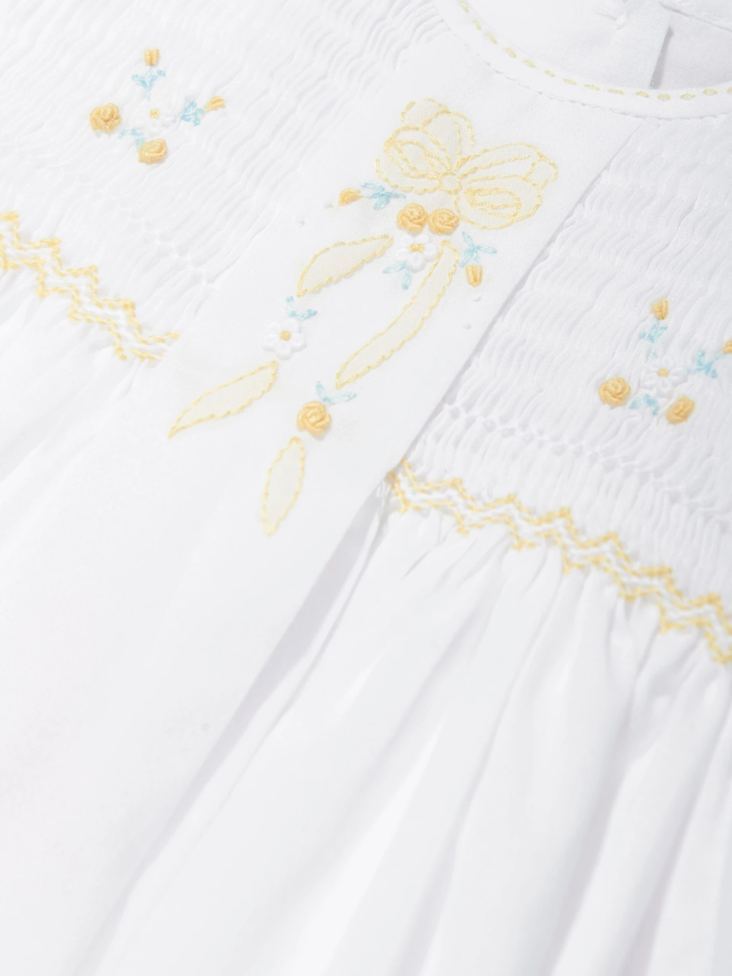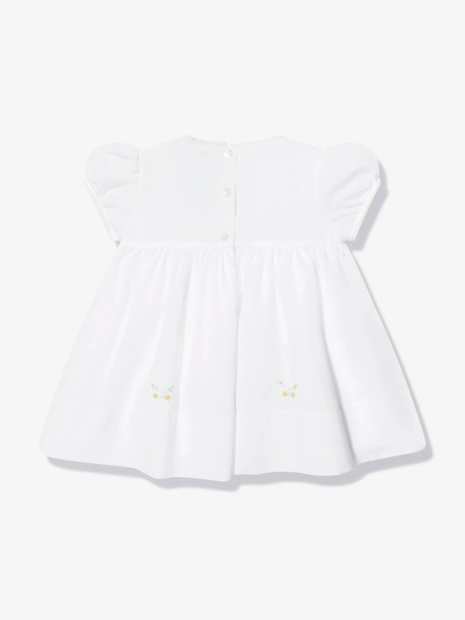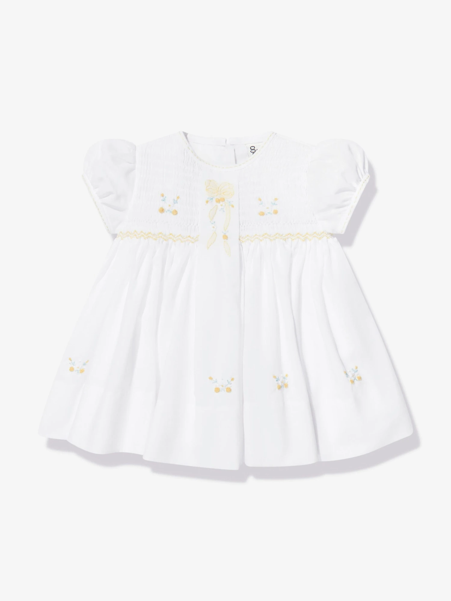 Introducing Sarah Louise’s Baby Girls Embroidered Dress in pristine White, an exquisite addition to your baby girl’s wardrobe, ideal for the joyous Easter celebrations. Here are the compelling features that make this dress an exclusive piece: