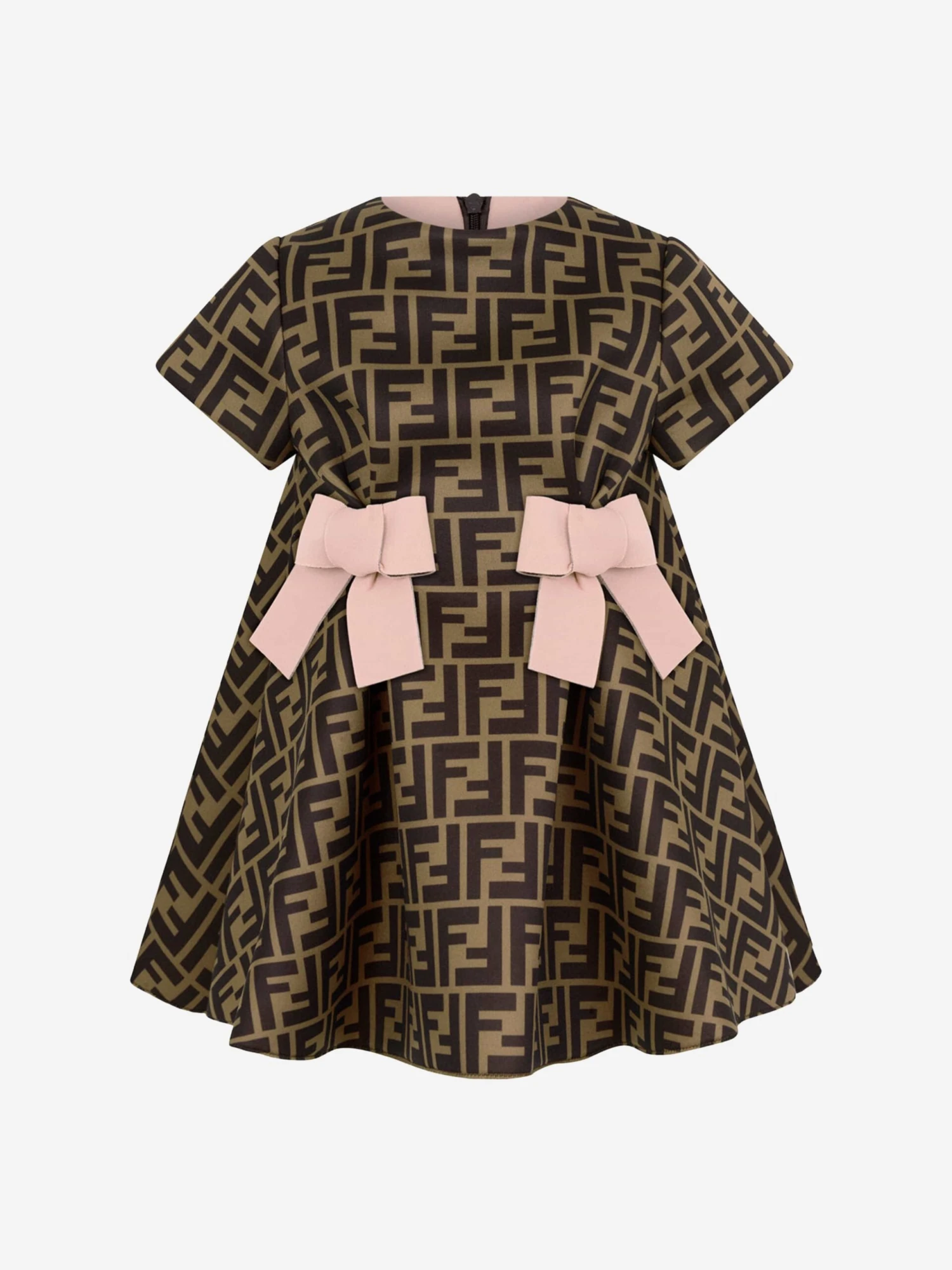•Upgrade your Baby Girl’s style quotient with Fendi’s Baby Girls FF Logo Dress in Brown. Place your order now and let her radiate charm and elegance!