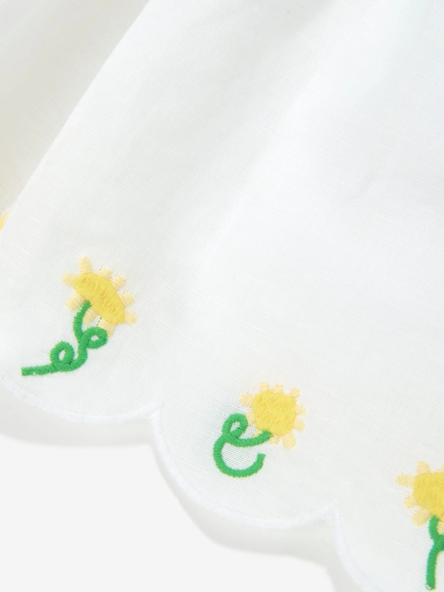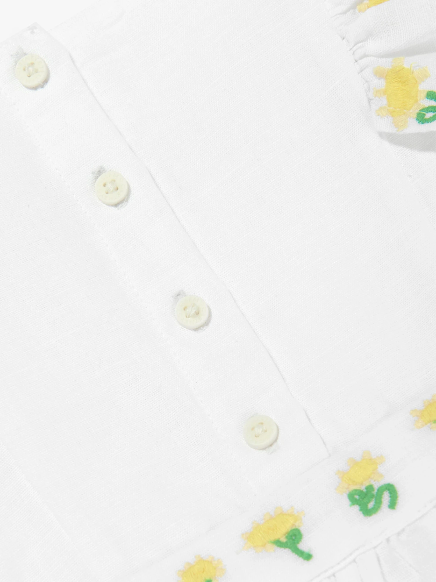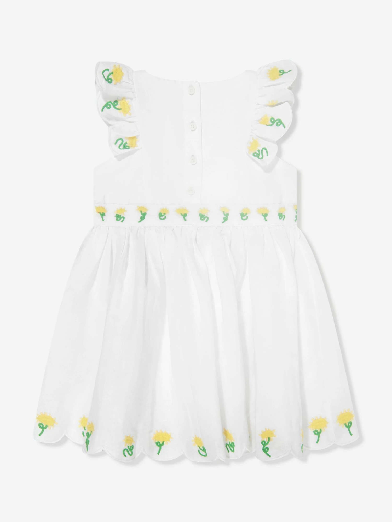 Stella McCartney incorporate high quality detailing and loud graphics into their exquisite designs. This baby girls white woven dress is reflective of the British luxury label’s quirky and eco-friendly perspective. Made in a beautiful linen material via a sundress style with embroidered sunflower detailing. Both wistful and effortlessly sophisticated, she will be obsessed.