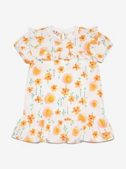 Marni’s unpredictable language and visual use of graphic rigor are embodied in this baby girls dress. Envisioned in beautiful cotton poplin with balloon sleeves, gathered details and Sunny Day allover graphic. She will be obsessed.