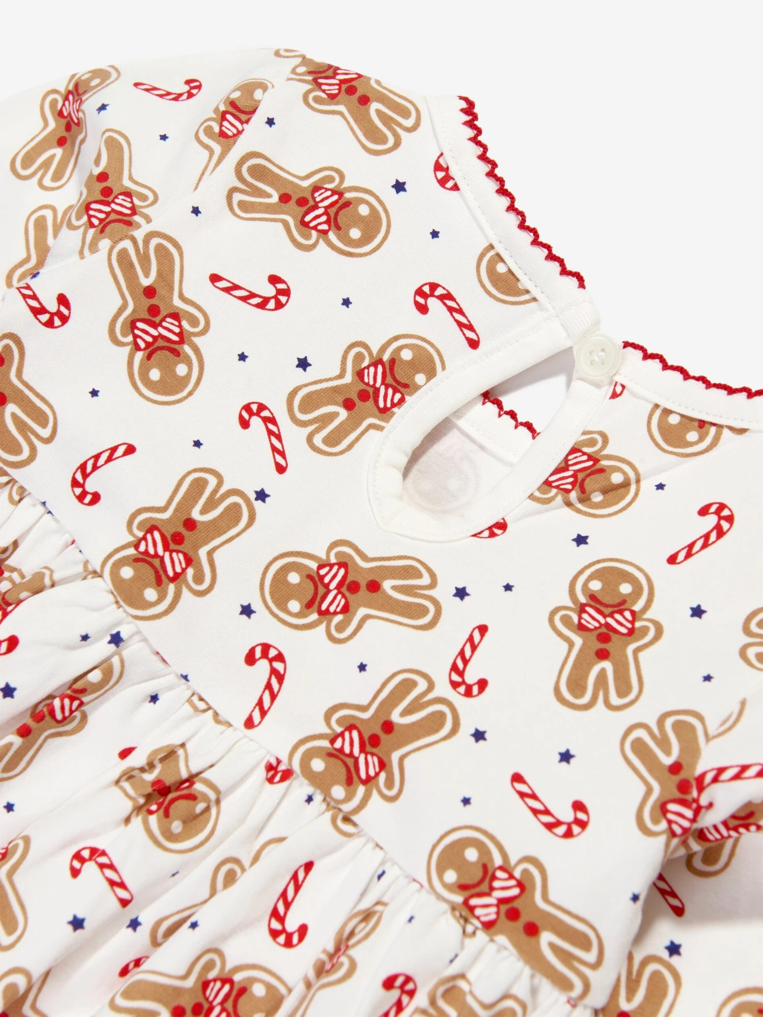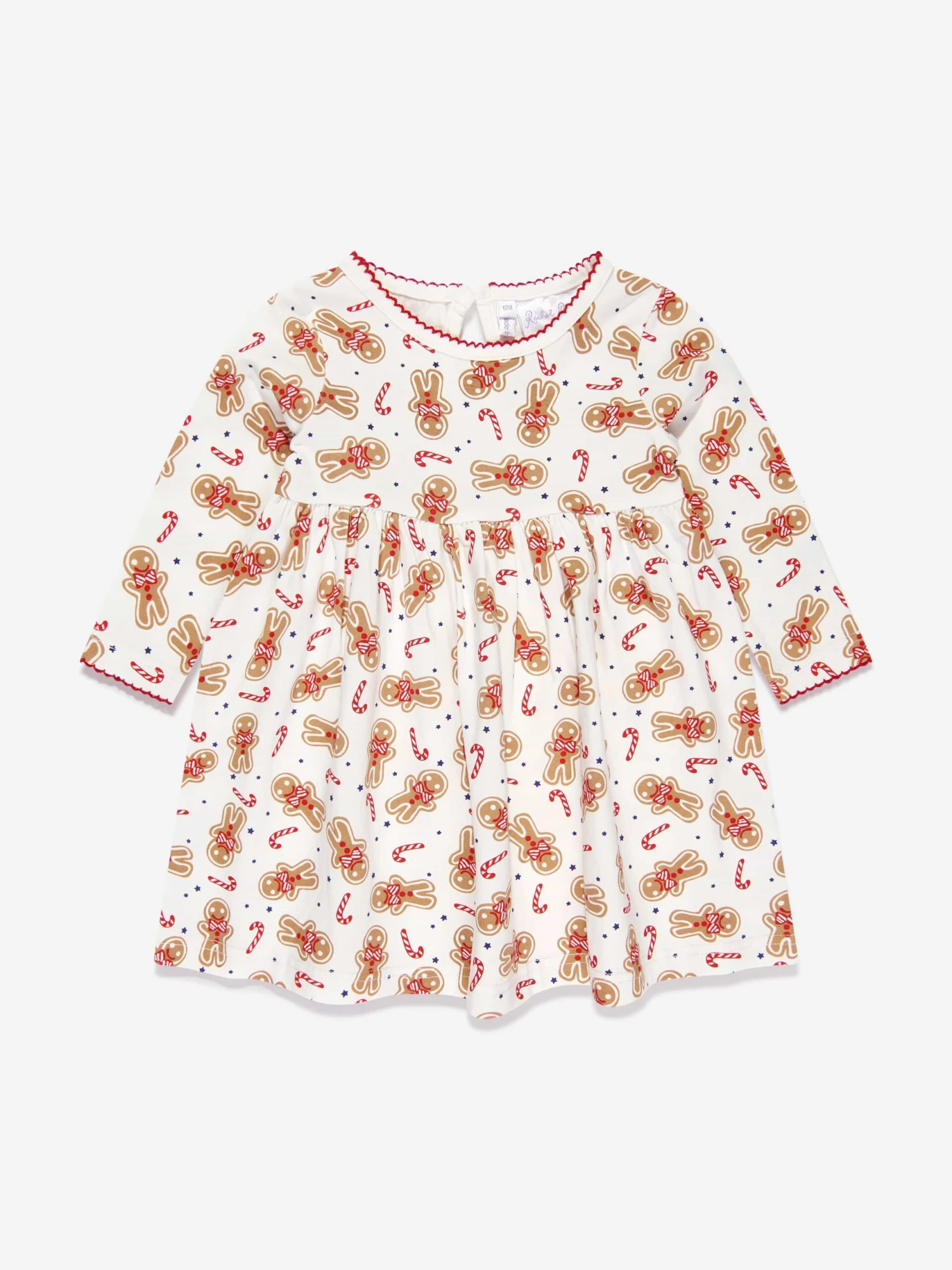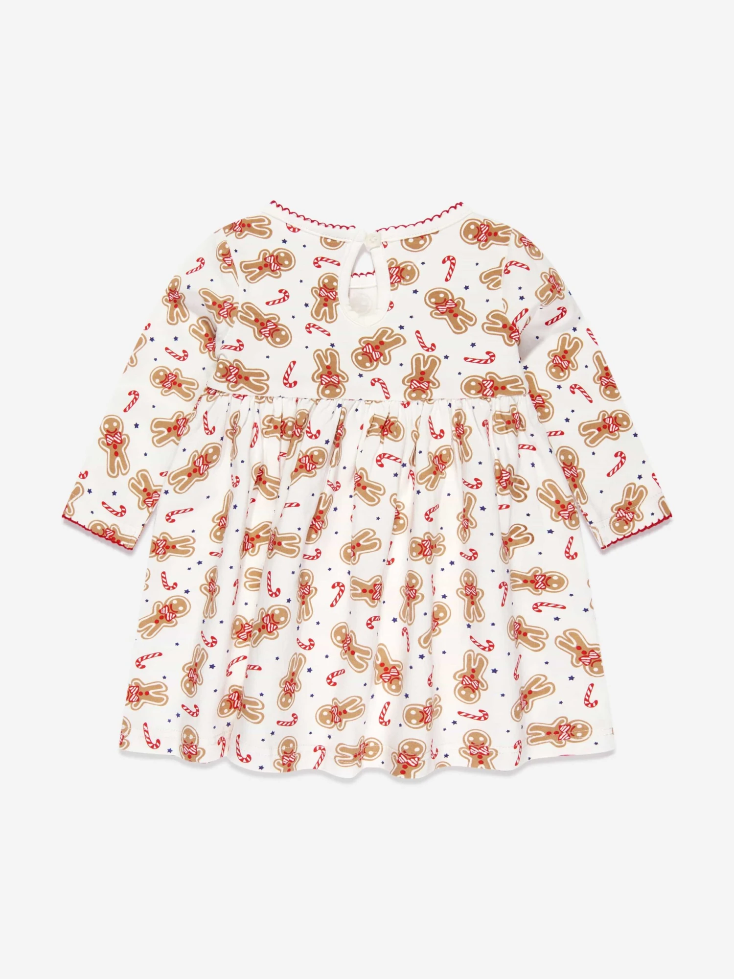Rachel Riley project mesmeric detailing into their sophisticated hand-embroidered designs. Made with imperial construction, this baby girls gingerbread jersey dress features a mesmeric pattern of candy canes. Perfect to get into the Christmas spirit via a cosy jersey fabric both cute and sophisticated.
