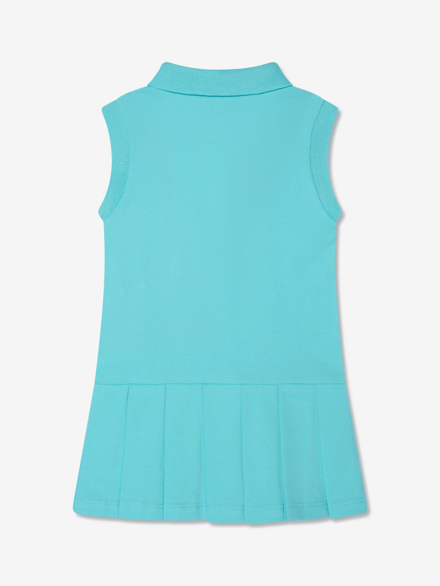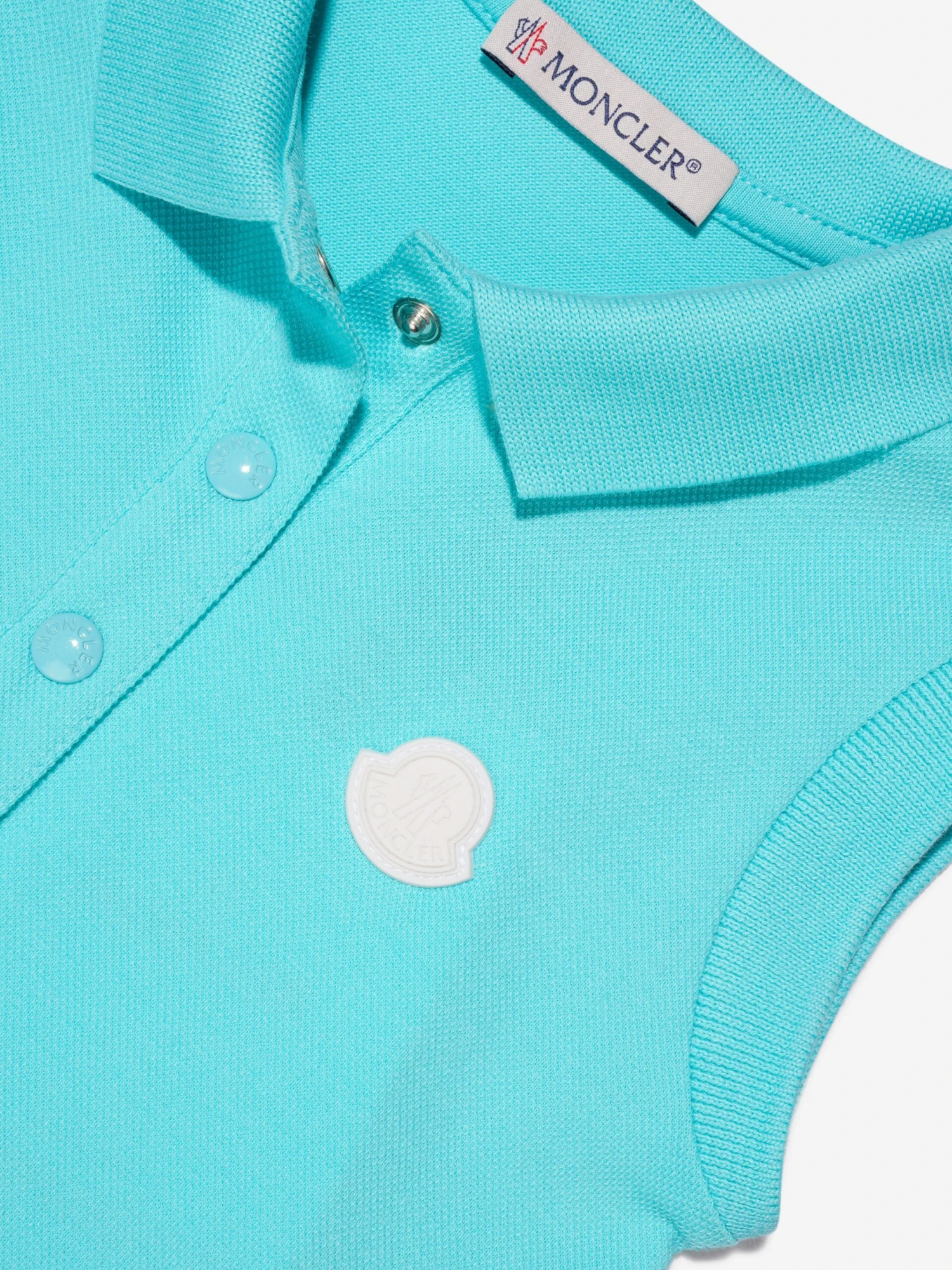 Unveiling the exquisite Baby Girls Sleeveless Polo Dress in Turquoise by Moncler. A heaven-sent staple for your darling’s summer wardrobe. Its captivating characteristics are: