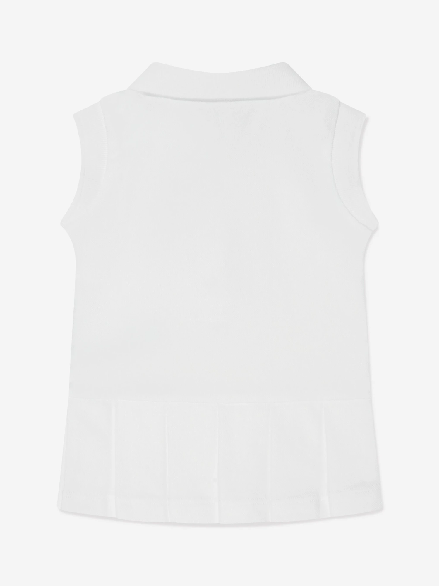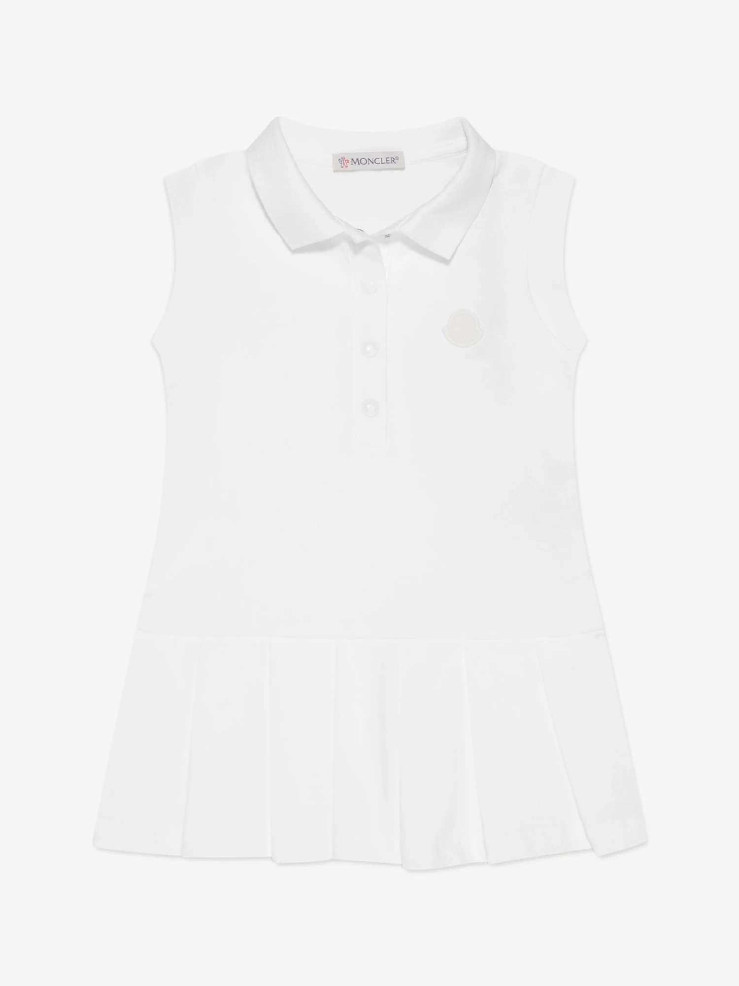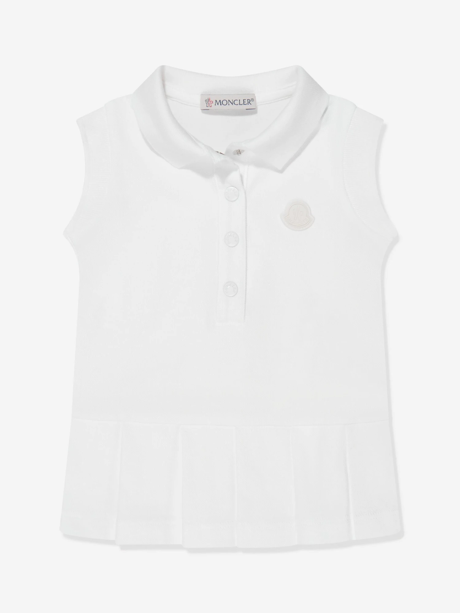 Presenting the adorable Baby Girls Sleeveless Polo Dress in White by Moncler. A summer essential for any stylish Baby_Girl’s wardrobe, this dress merges elegance and cosiness. Here’s what makes it distinctive: