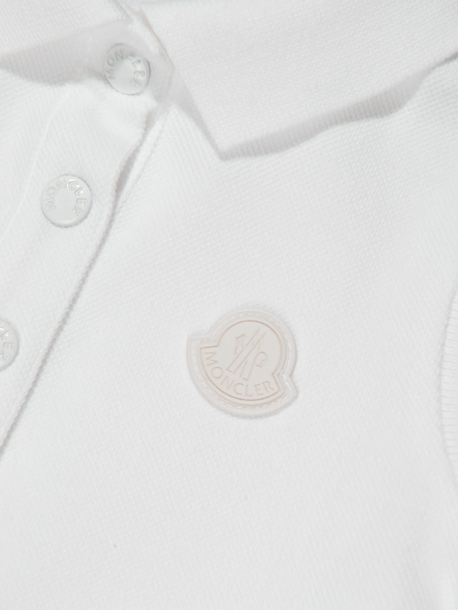 •Redefine your Baby_Girl’s wardrobe! with this exquisite Moncler Sleeveless Polo Dress in White. Stratify their style by purchasing today!