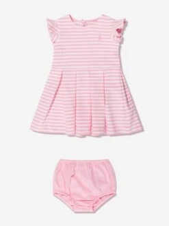 Introduce a splash of charm to your Baby, Baby_Girl,Girl’s ensemble with the Ralph Lauren Baby Girls Striped Ruffle Dress in Pink. Prime pick for SS2024, this dress is an embodiment of luxury, style, and comfort. Key features are:
