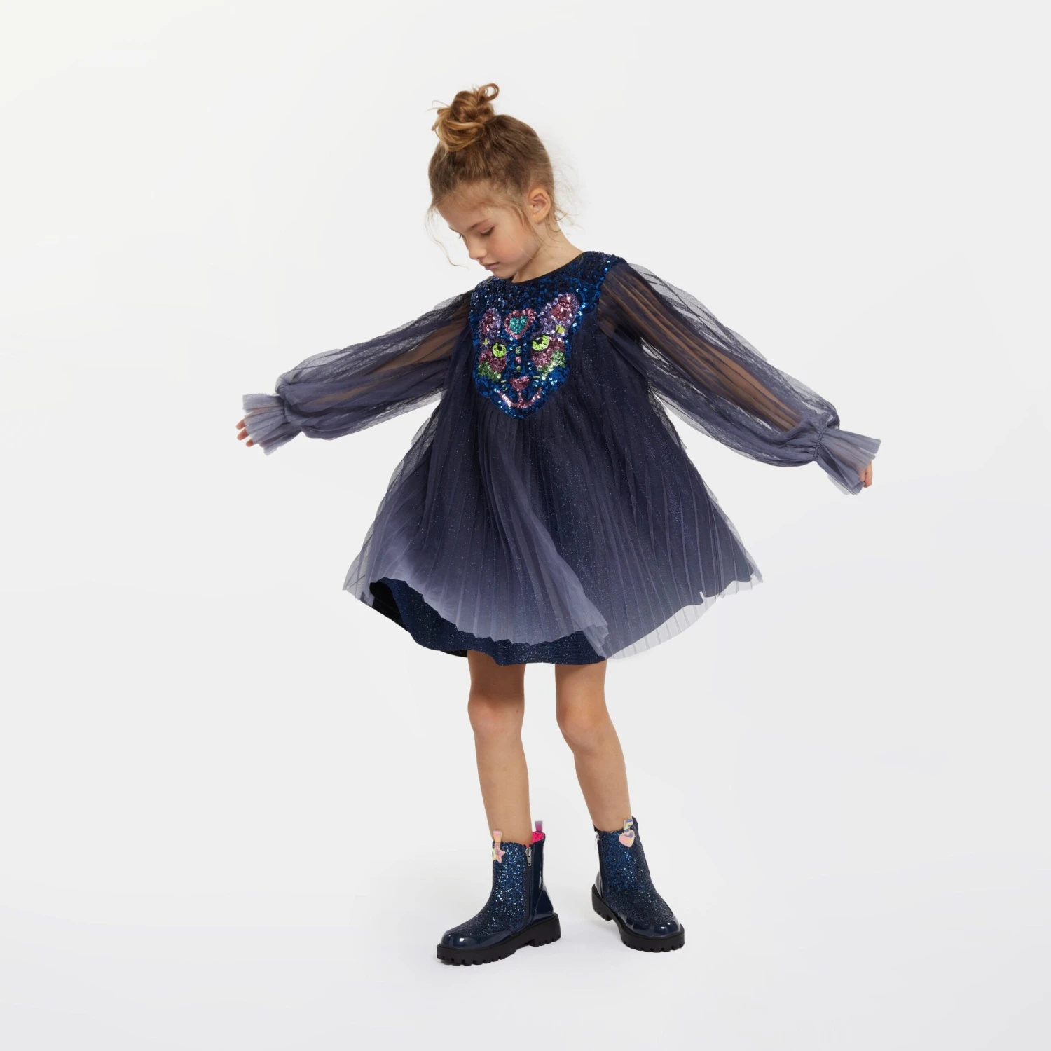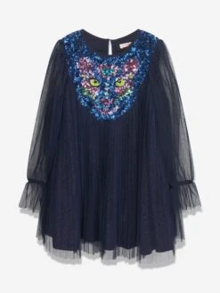 Billieblush deliver a fun enigmatic attitude in their stylish abstracts. This girls navy dress captures the label’s innovative outlook and spontaneous nature. Made with ribbed trims on a crew neck. The look is complete with an eccentric slogan in a heart shape on the front. It will be her favourite to wear.