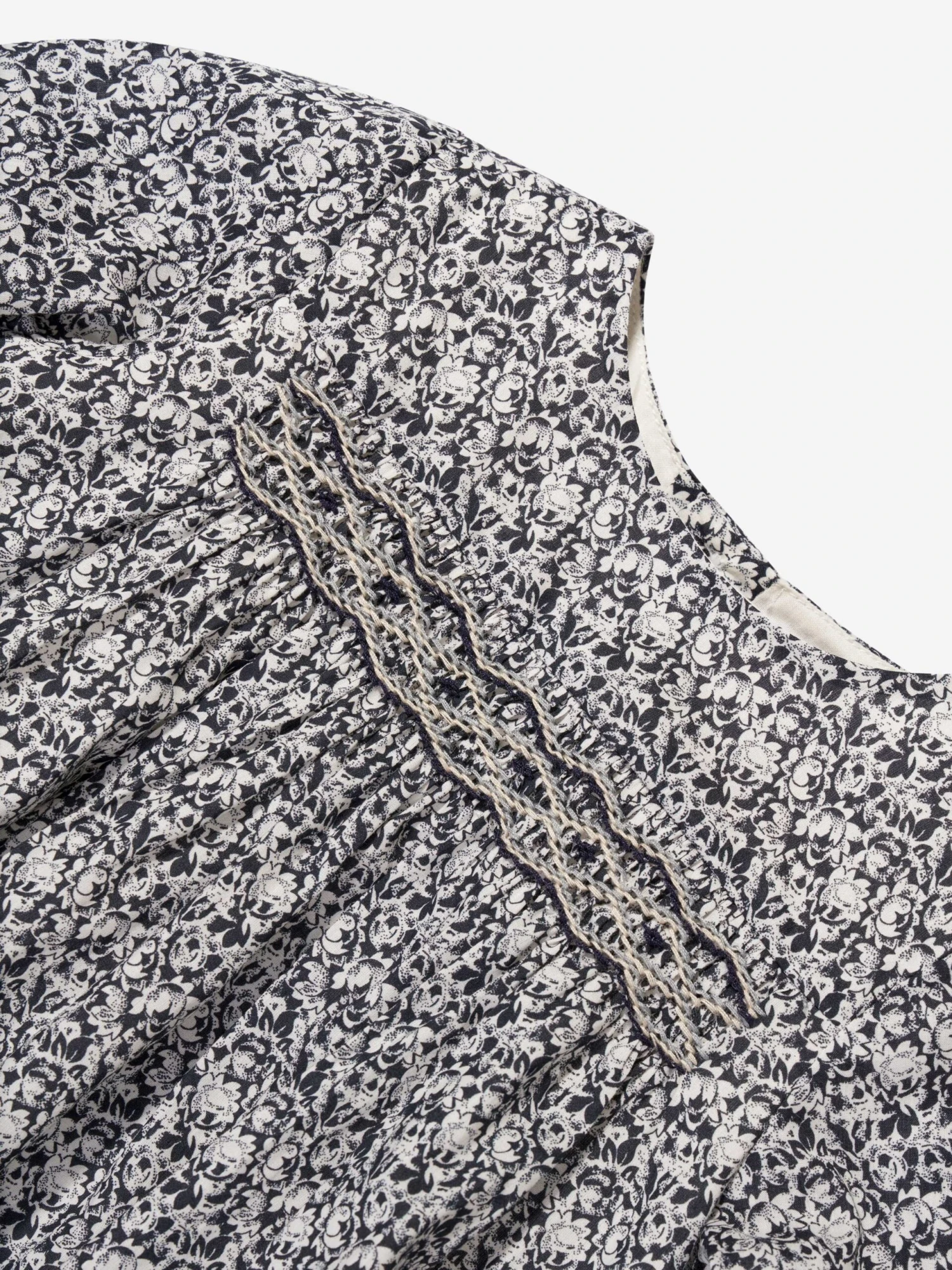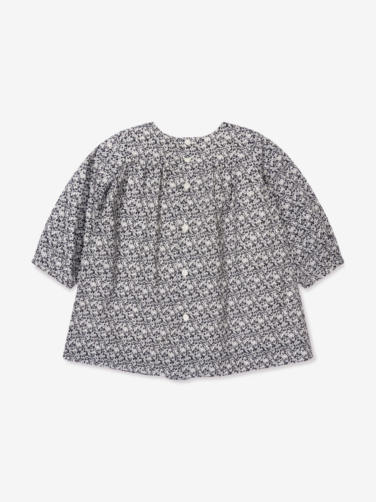 Bonpoint project French couture elements into their dainty portraits. This baby girls smock dress is reflective of the label’s spellbinding quality and flawless attention to detail. Made in a beautiful liberty pattern with a back button fastening, stitched detail and back button fastening. She will look and feel effortlessly sophisticated.