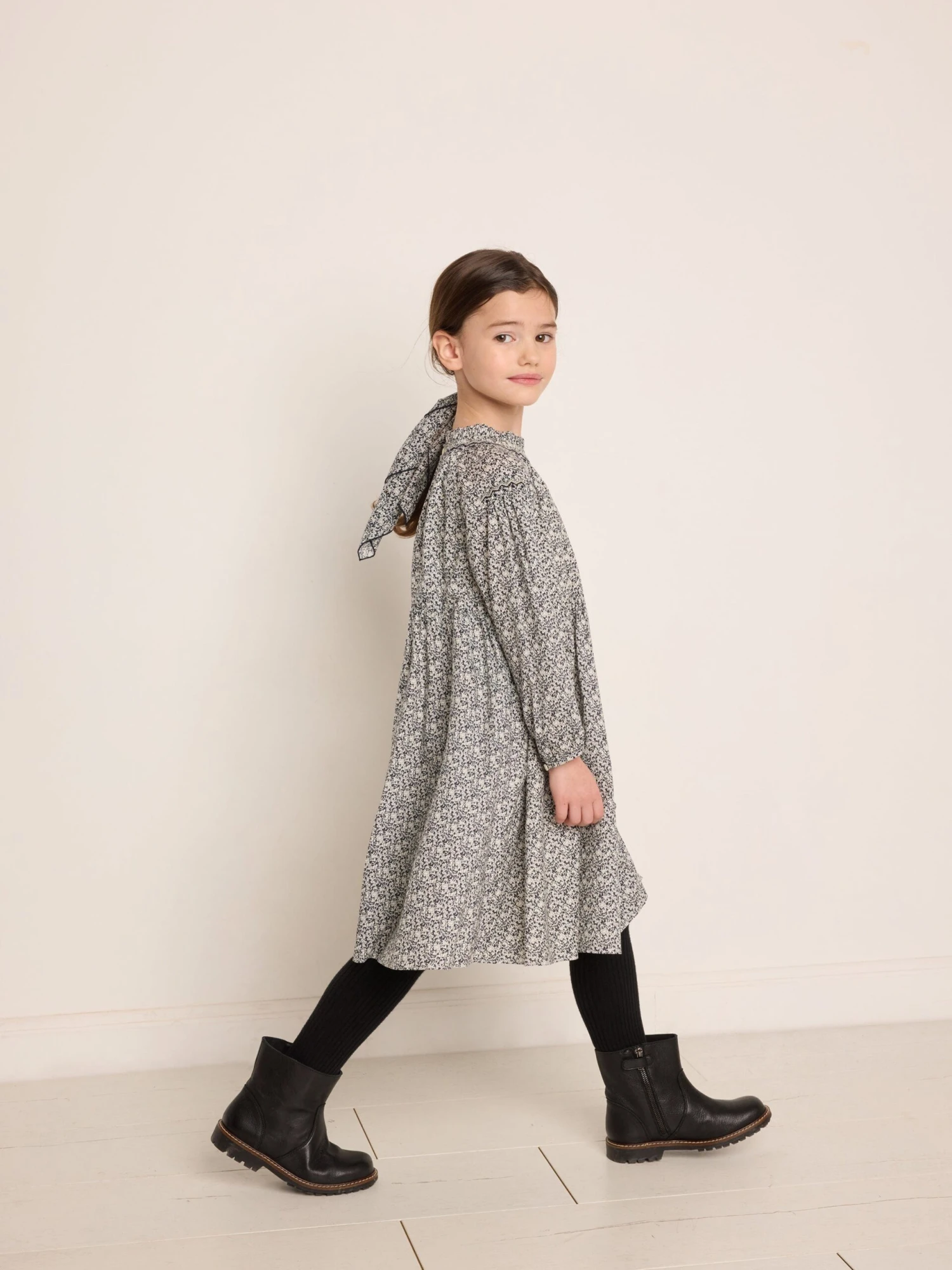 Bonpoint’s totally French aesthetics have been depicted with care and beautiful precision. This marine robe bluebell liberty dress is reflective of the label’s stunning craftsmanship and innovative outlook. Made in stunning black and white floral patterning.