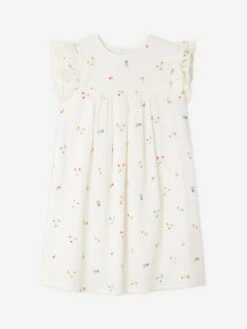 Bonpoint project French couture elements into their dainty portraits. This girls dress is reflective of the label’s spellbinding quality and attention to detail. Crafted in exquisite embroidered floral cherry patterning via short ruffle sleeves and a back pearlescent fastening.