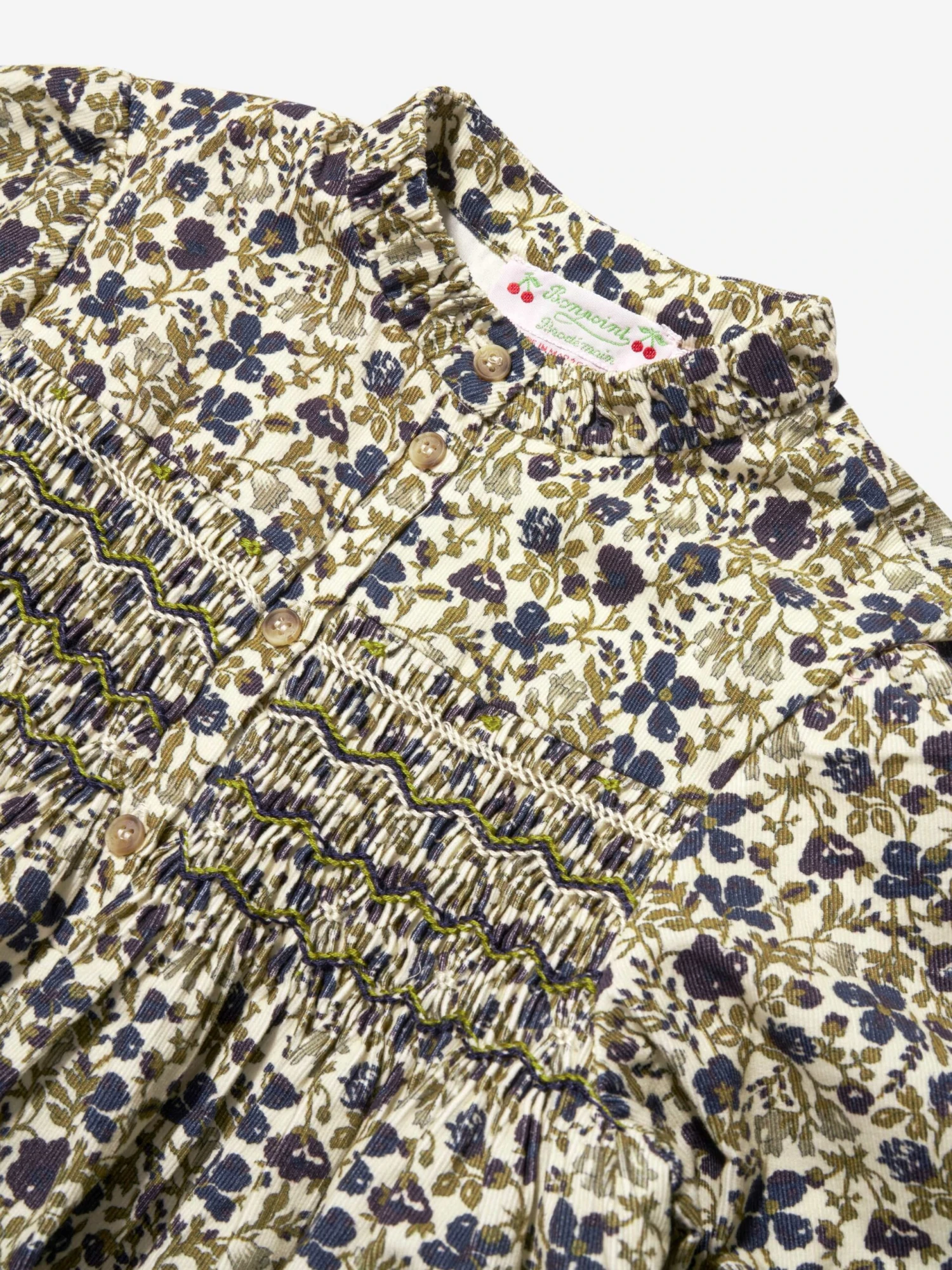 Bonpoint’s passion for the bohemian aesthetic is amplified in this girls beige smock dress. Made in dark blue floral patterning in the finest velvet, she will be obsessed.
