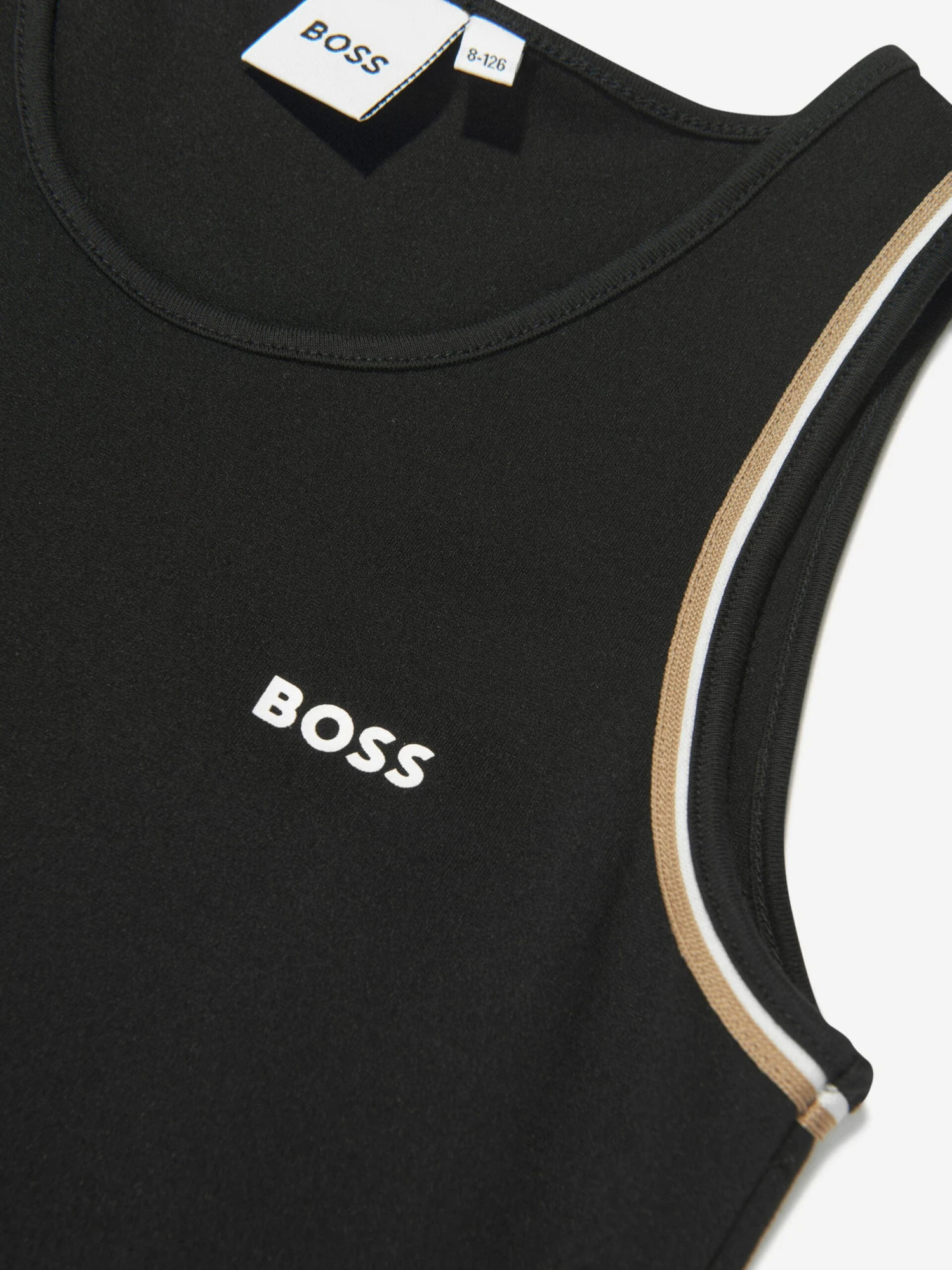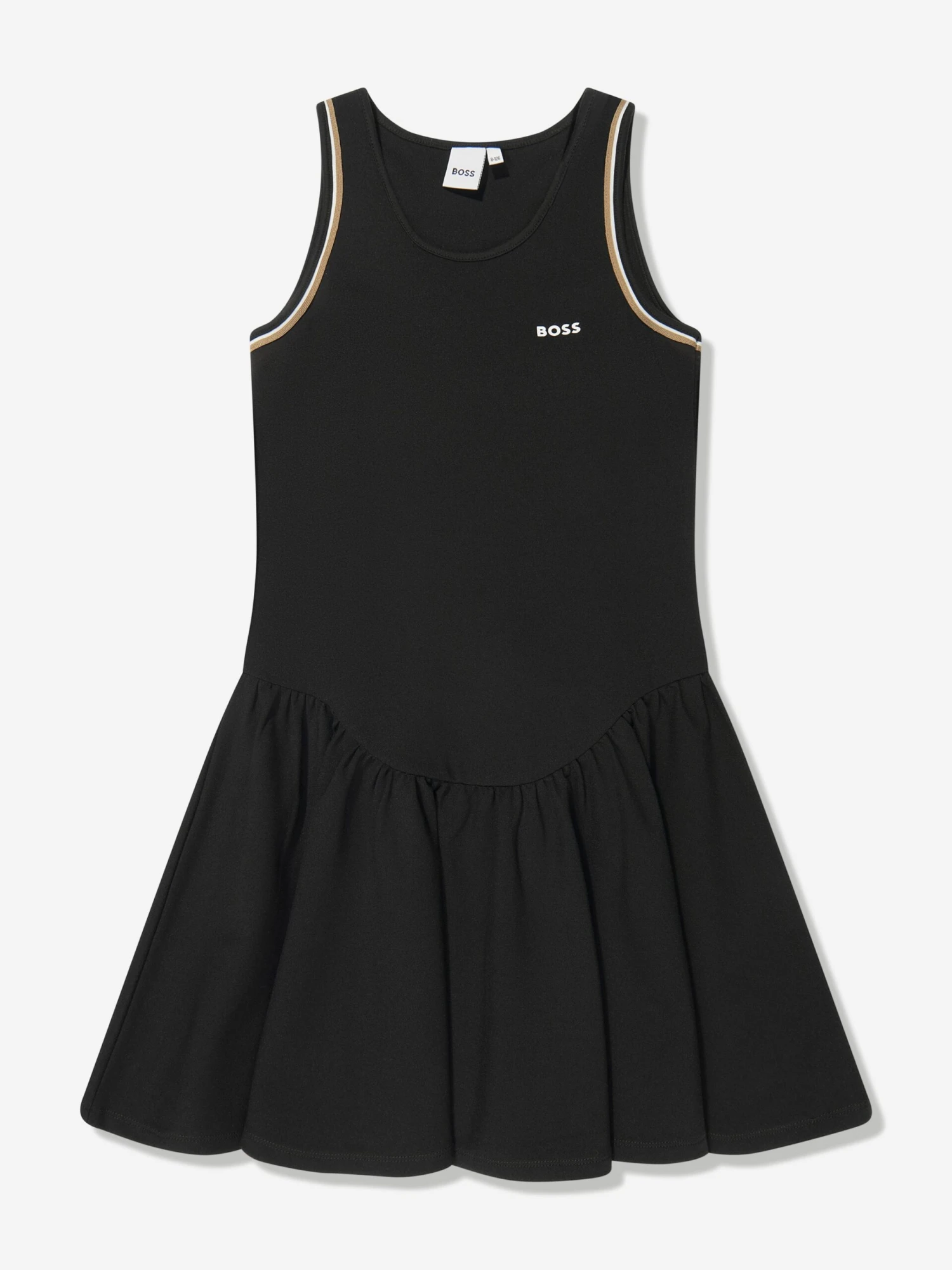 Introduce your girl to the elegant world of fashion with the Girls Sleeveless Milano Dress in Black by Boss.