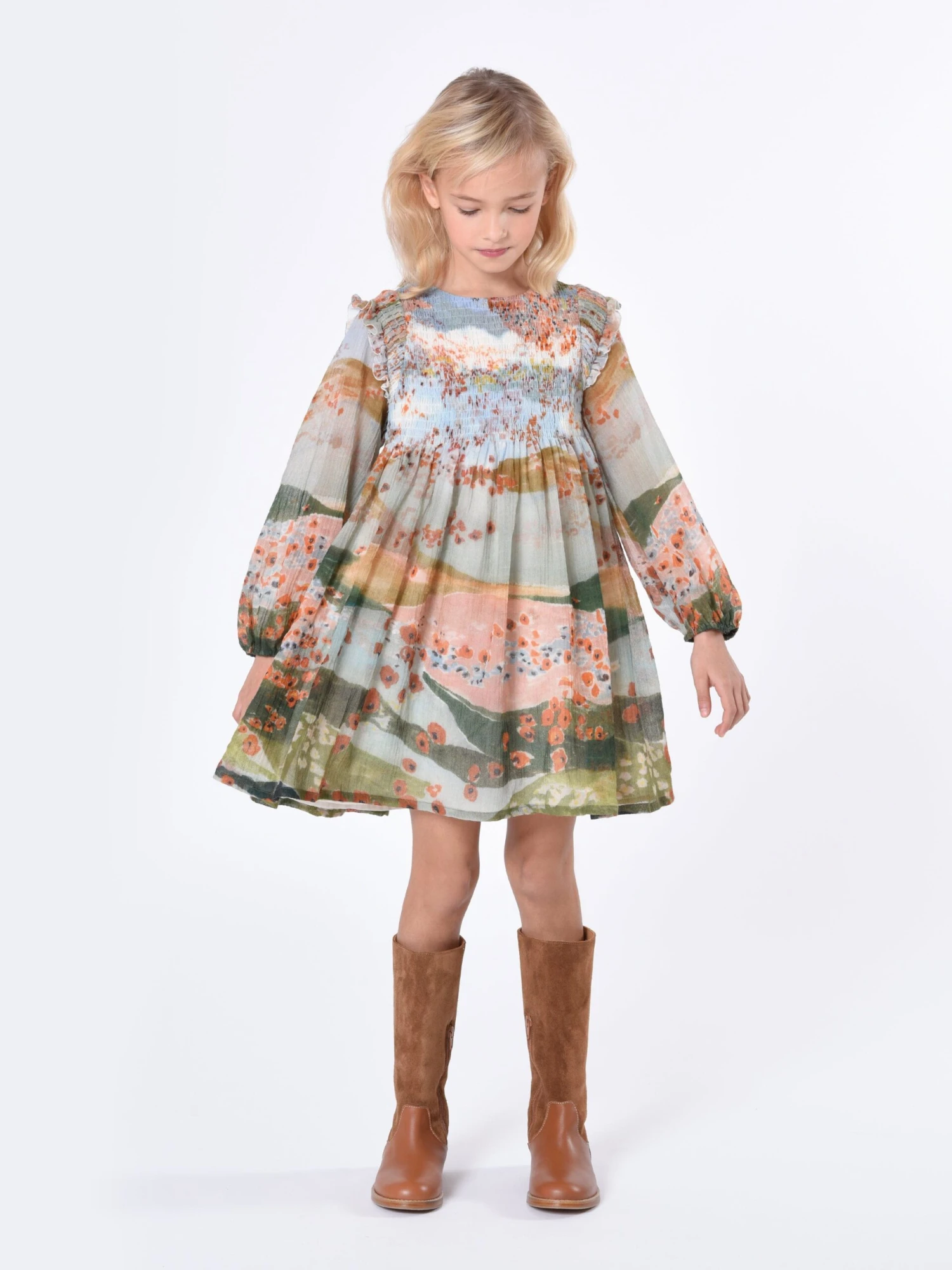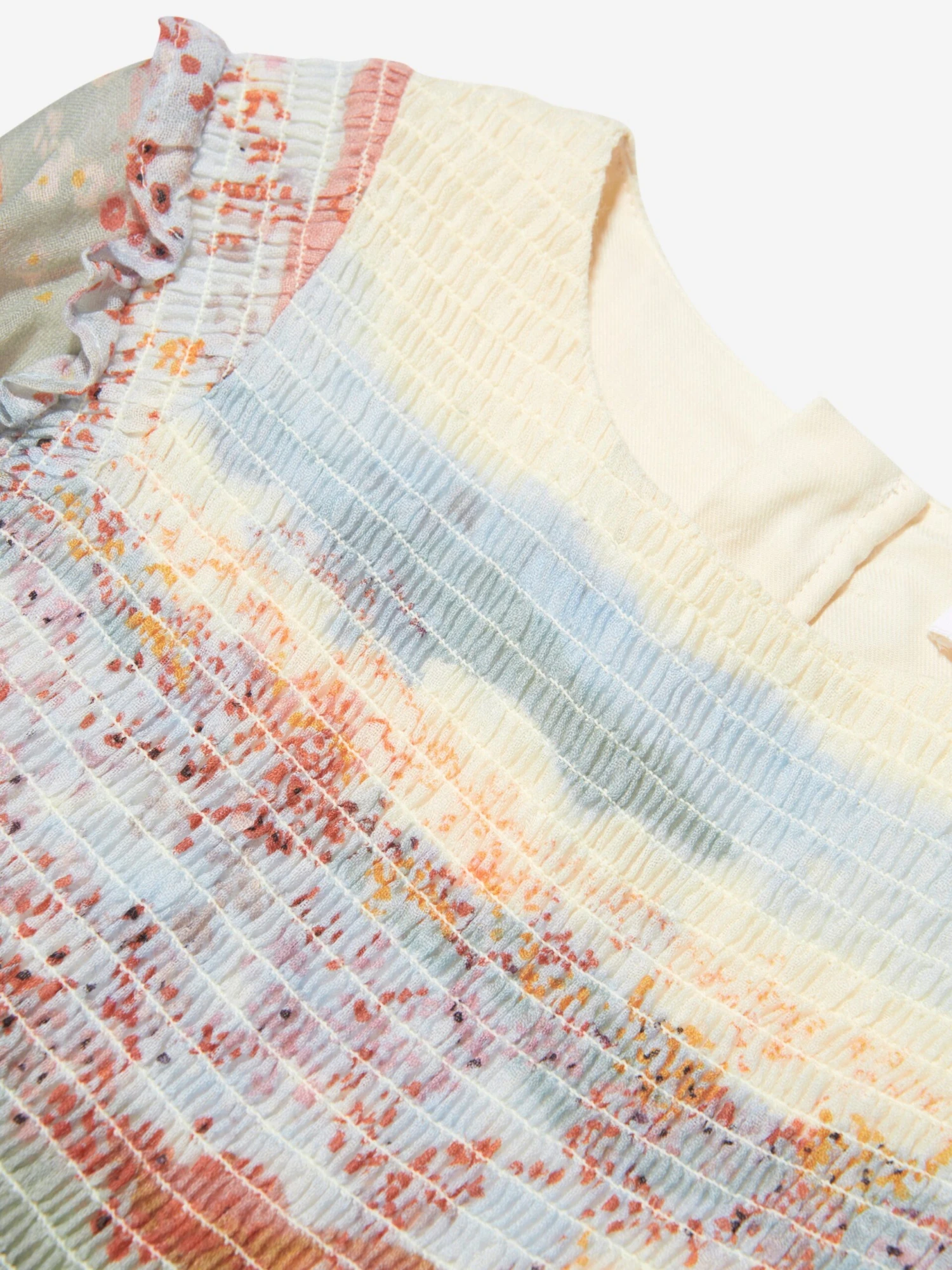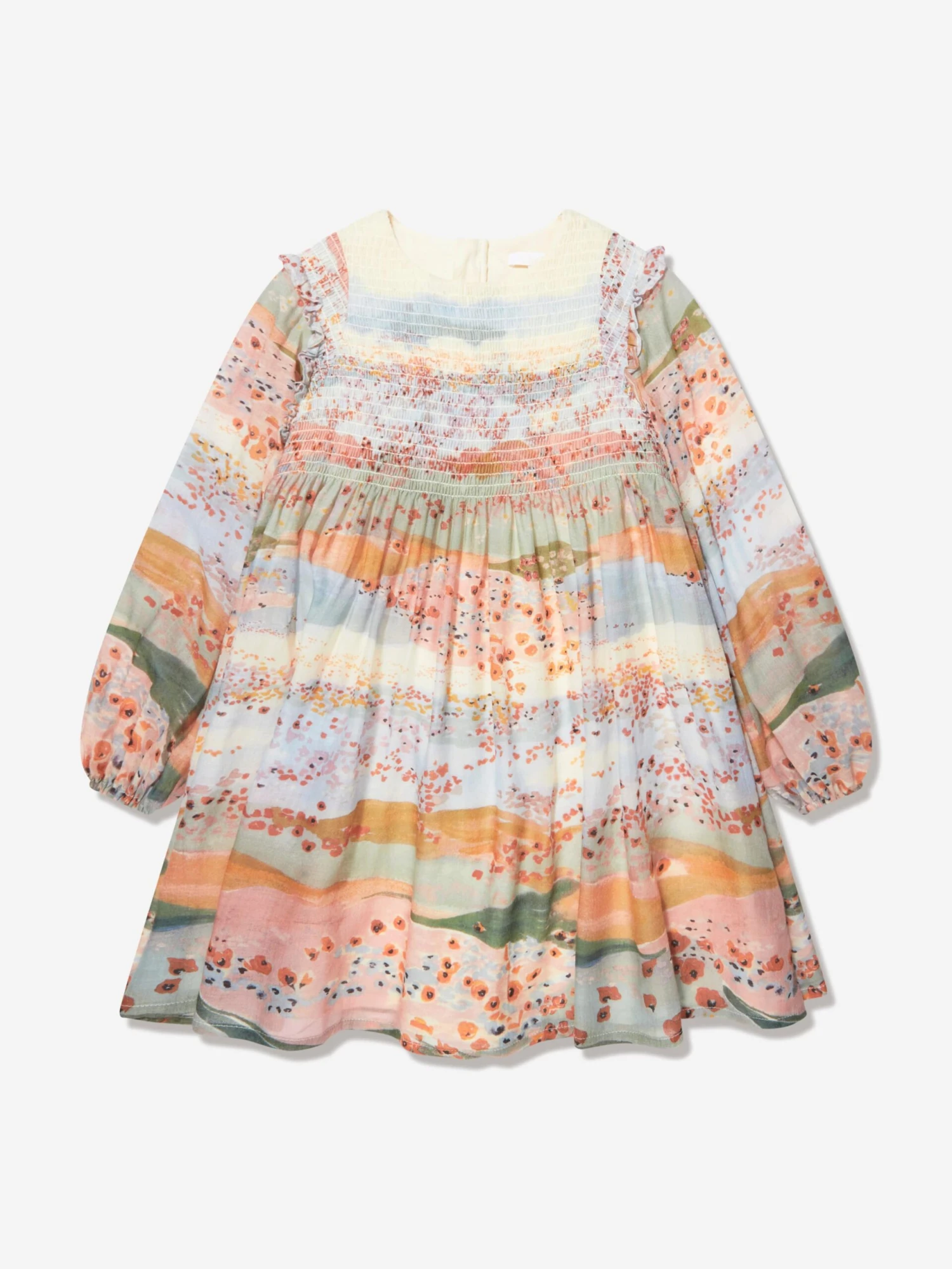Parisian luxury label Chloé revitalise contemporary designs into sleek sophisticated abstracts. This girls multicoloured ceremony dress captures the Bohemian style of the 60s/70s. Made in a wool gauze mini-me print, it features ruffled trims, smocks on the bib, zip-up fastening and a Chloé logo embroidered at the bottom of the dress. She will embody unparalleled elegance.