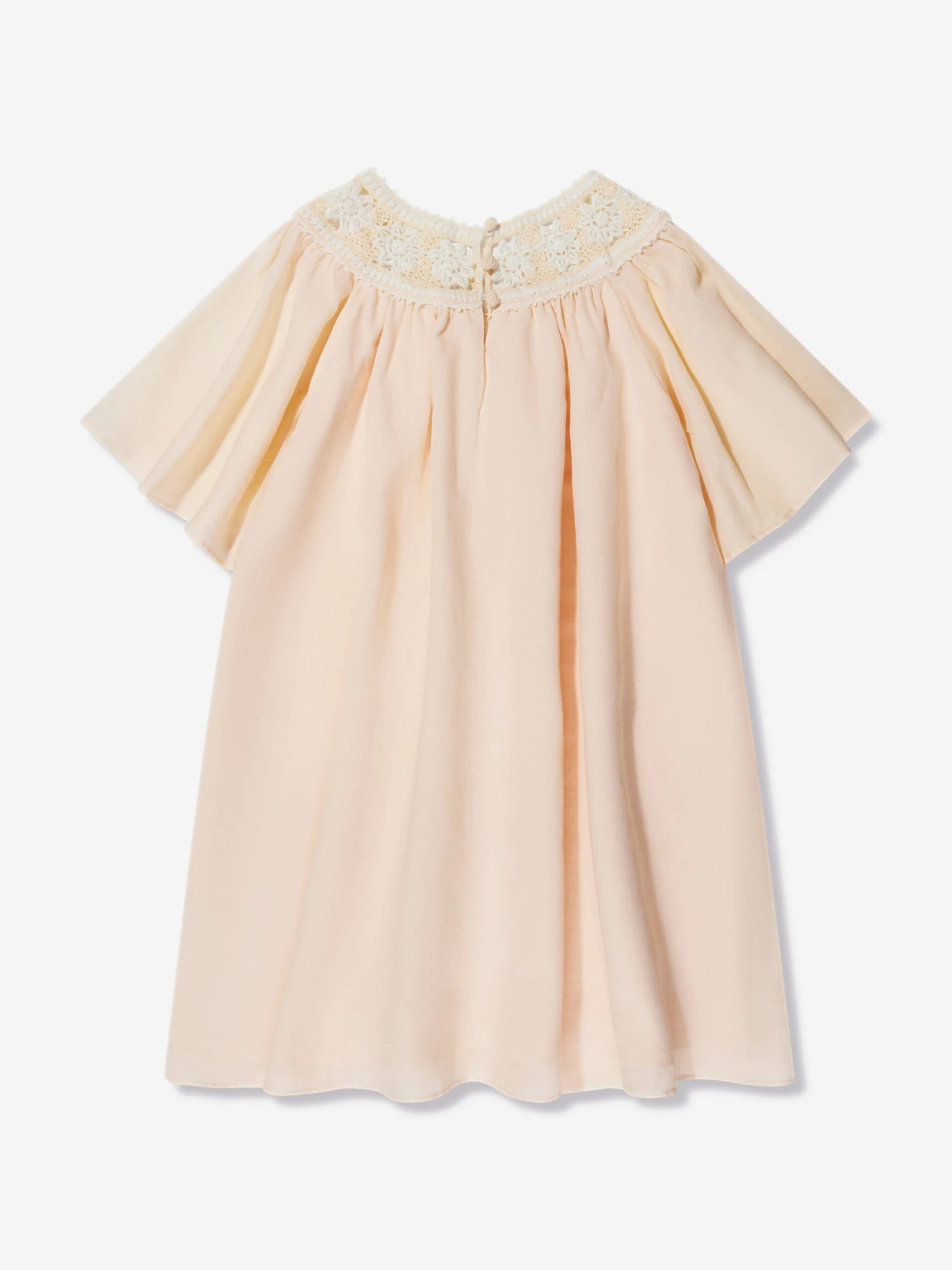 Presenting the exquisite Girls Crocheted Lace Collar Dress in Pink by Chloe – a chic addition to your girl’s wardrobe for SS2024. Key attributes that distinguish the dress: