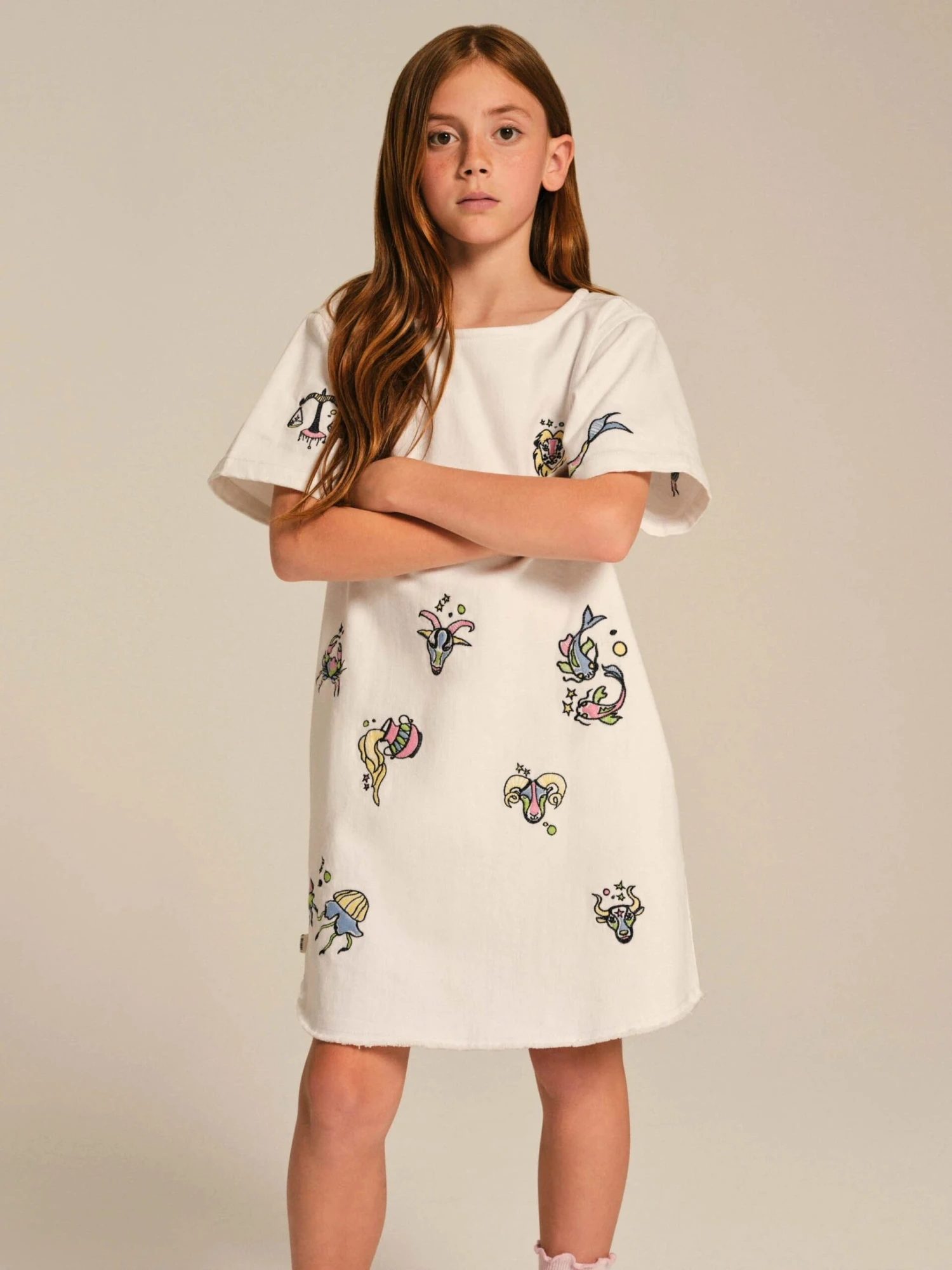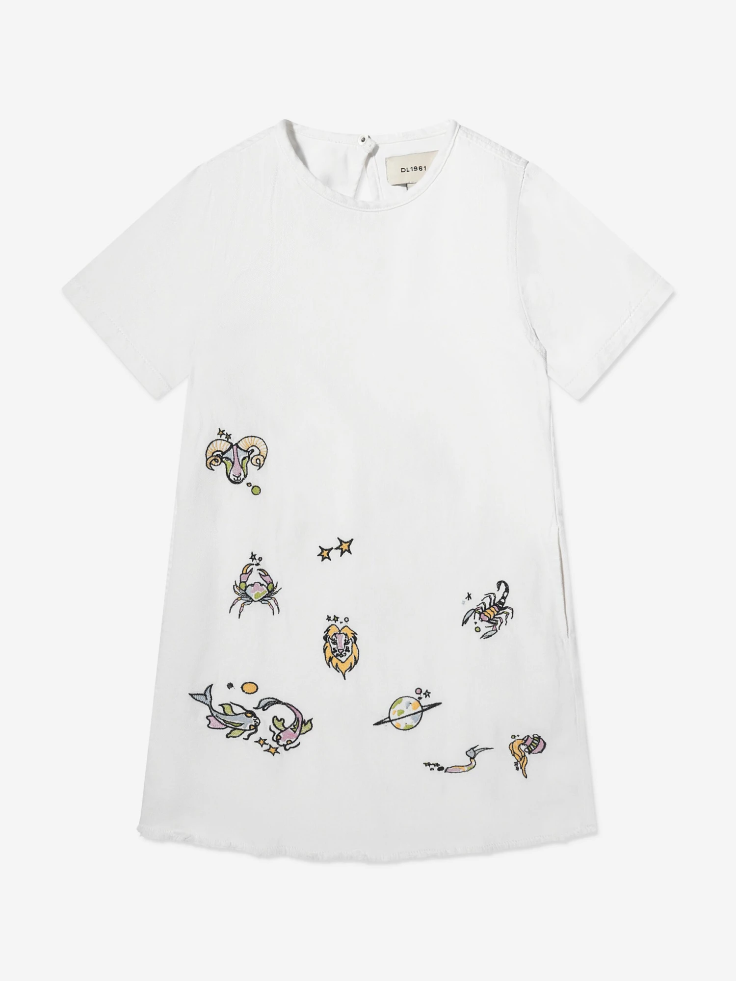 The Girls Kiki Star Signs T-Shirt Dress in White by DL1961 is the epitome of comfort and style–a wardrobe necessity for every little fashionista.