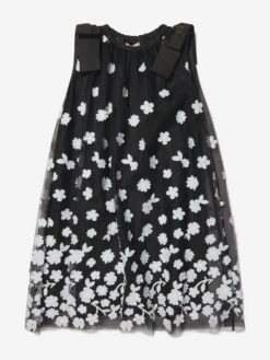 • Upgrade your girl’s apparel with this sophisticated, Black Girls Sleeveless Flower Dress With Bows by Elie Saab. Experience fashion at its finest!