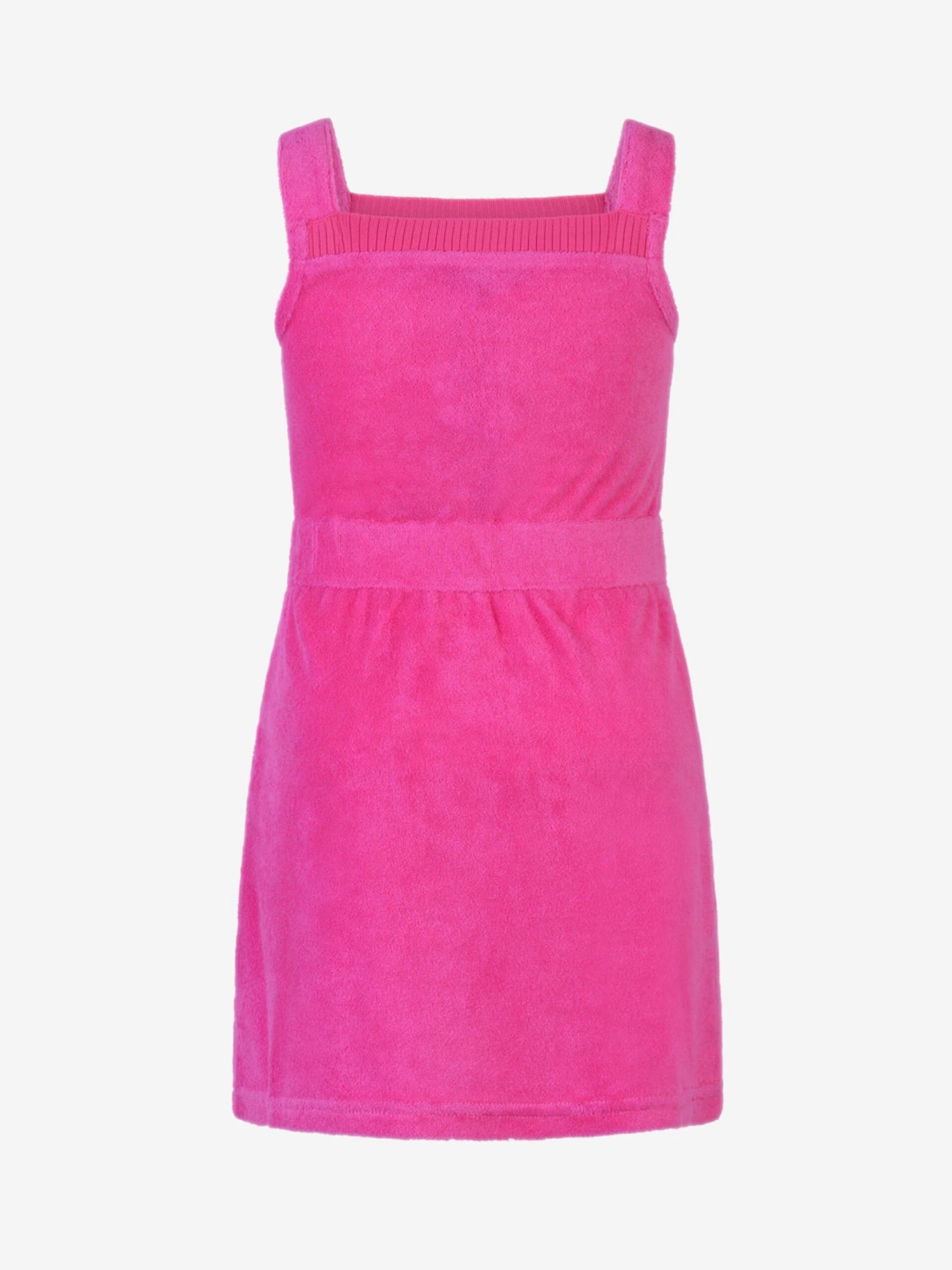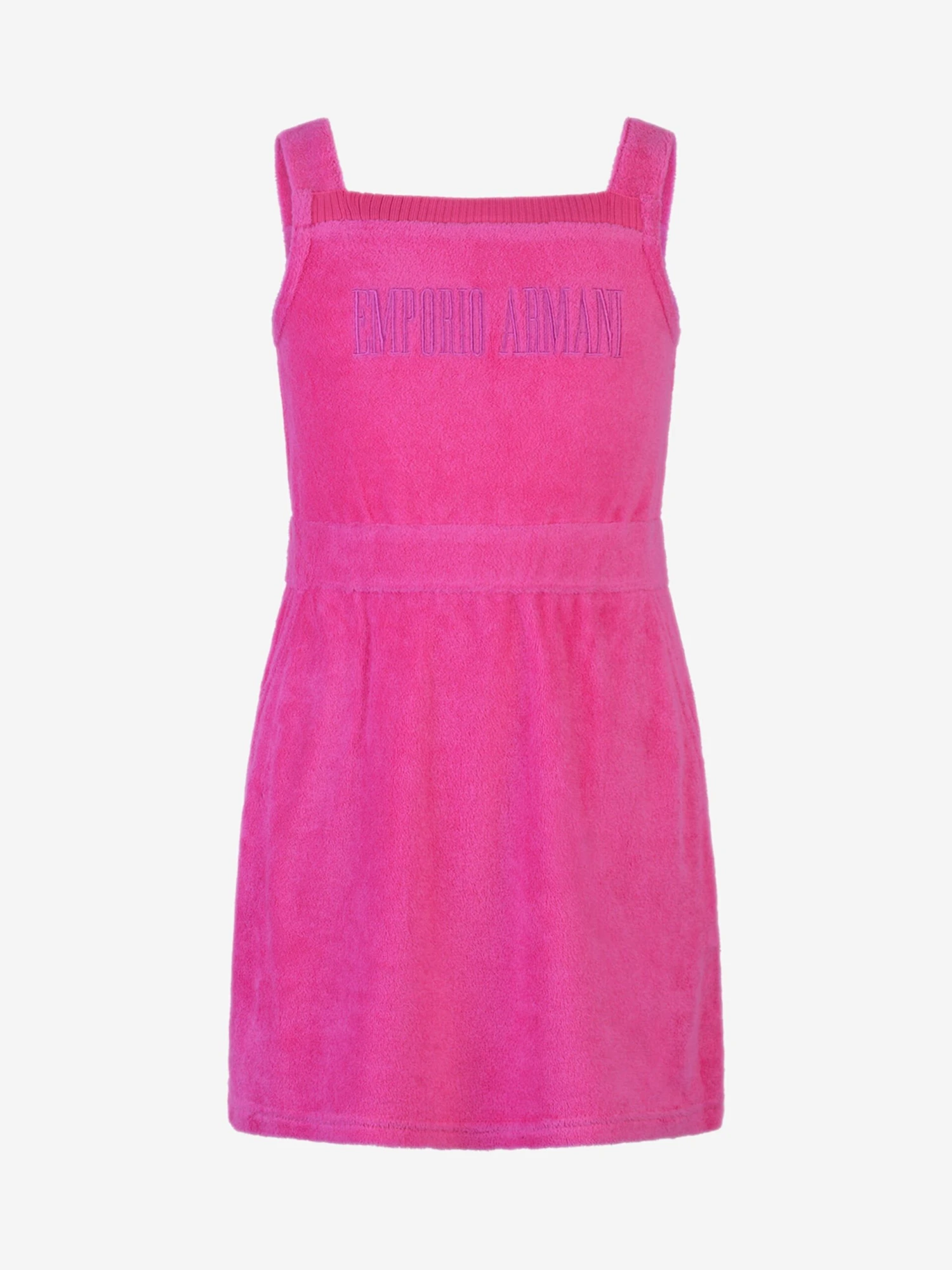 Introducing the aesthetically pleasing Girls Dress – Cotton French Terry Dress in a delicate pink hue, an Emporio Armani creation. Here are the distinctive features of this chic ensemble: