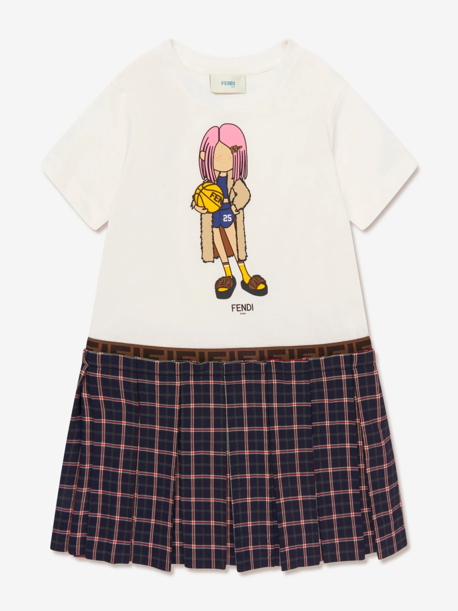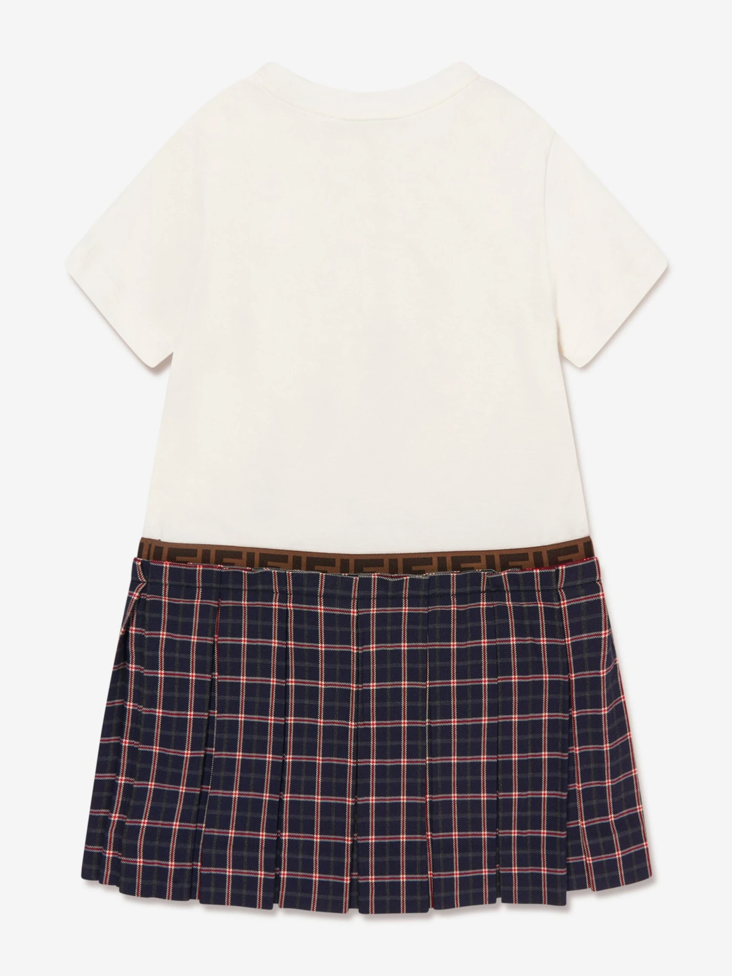Introducing Fendi’s Girls 2 In 1 Tartan Skirt Dress in Blue- the perfect blend of elegance and comfort. A worthy addition to your Girls wardrobe that offers: