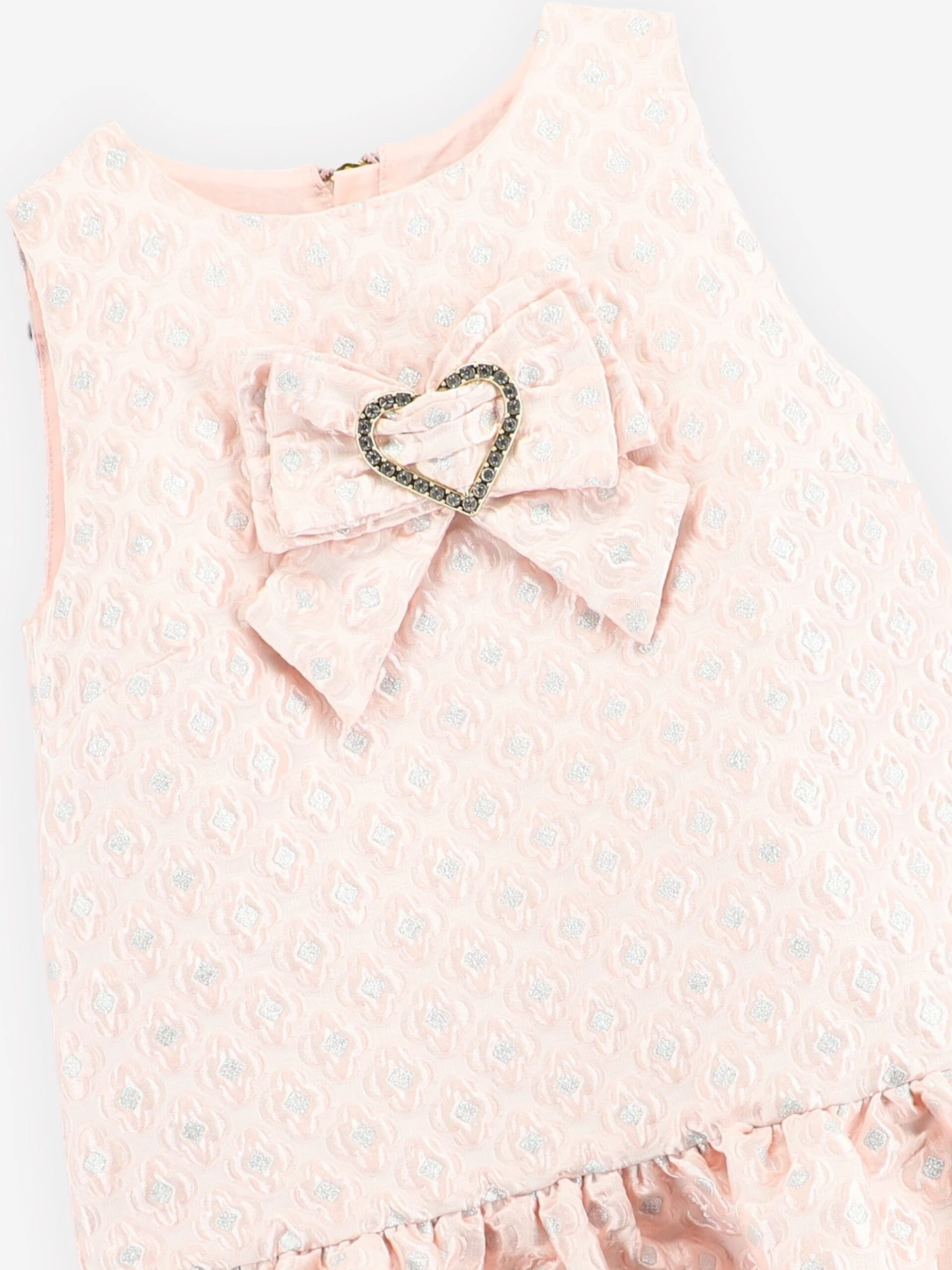 Angel’s Face incorporate beautiful material into their refined aesthetics. This girls Anneka jacquard dress captures the label’s distinctive craftsmanship and preference for a bygone era. Crafted in a sleeveless design with a peplum hem and a diamante buckle adorned with a detachable bow on the centre of the chest.