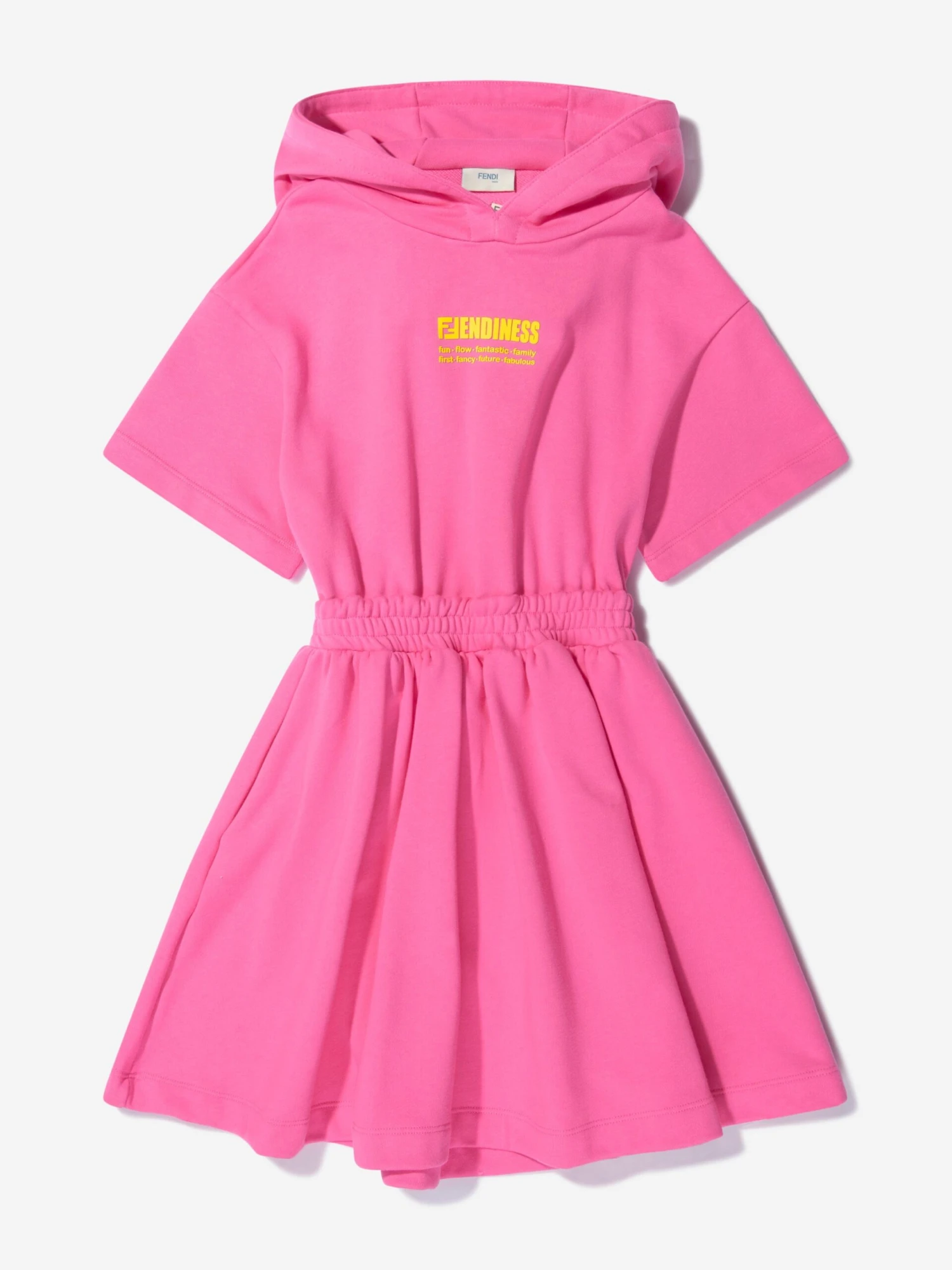 • Upgrade your girl’s wardrobe with this precious pink hoodie dress from Fendi. Get it today and let your young lady flaunt her distinctive style!