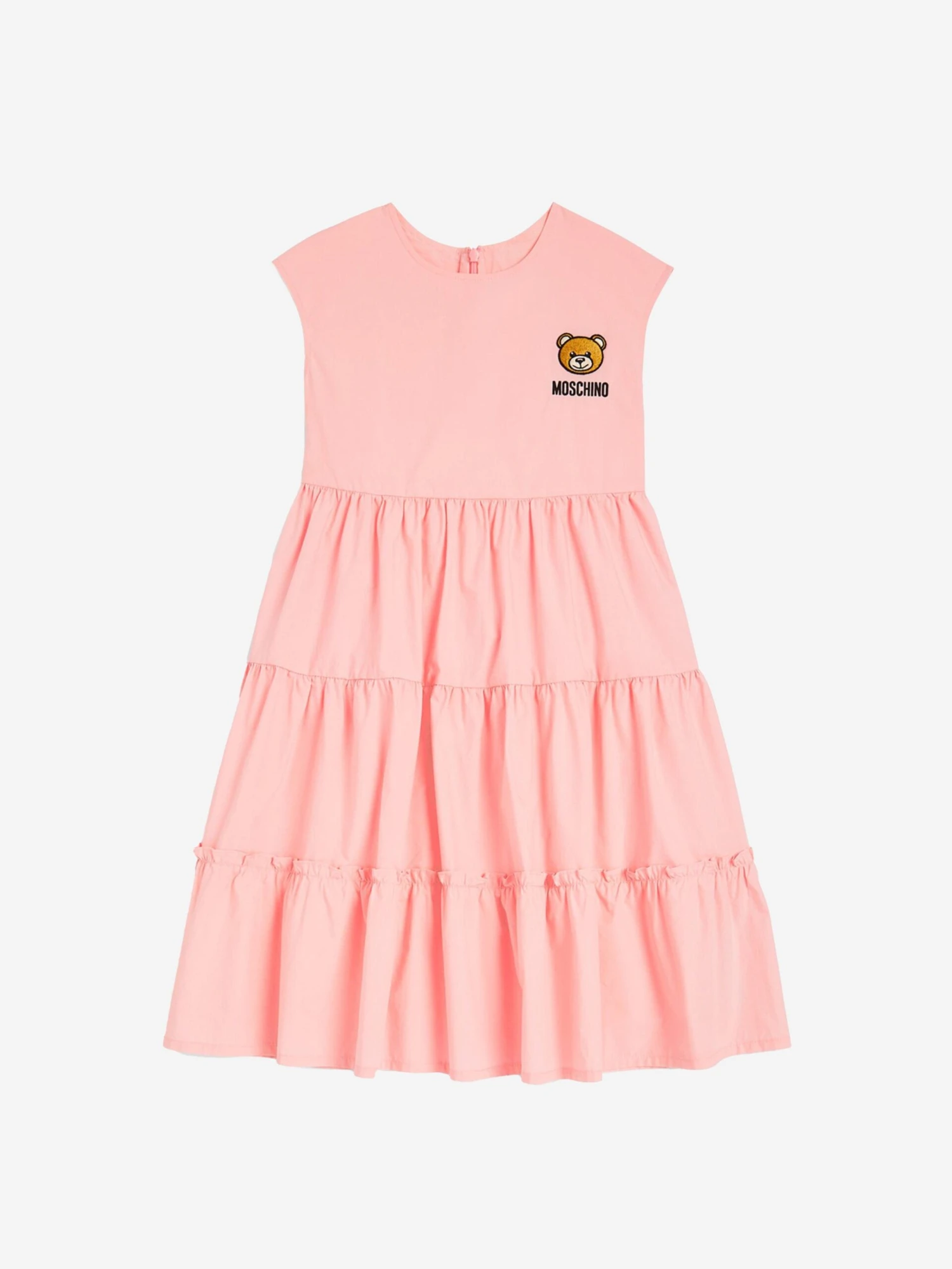 Moschino incorporate unique energy and a wistful elegance into their Italian designs. This girls t-shirt dress is reflective of the House’s passion for sleek, opulent designs. Crafted in beautiful tiered ruffles on the hem via a statement Moschino print on the top edge.