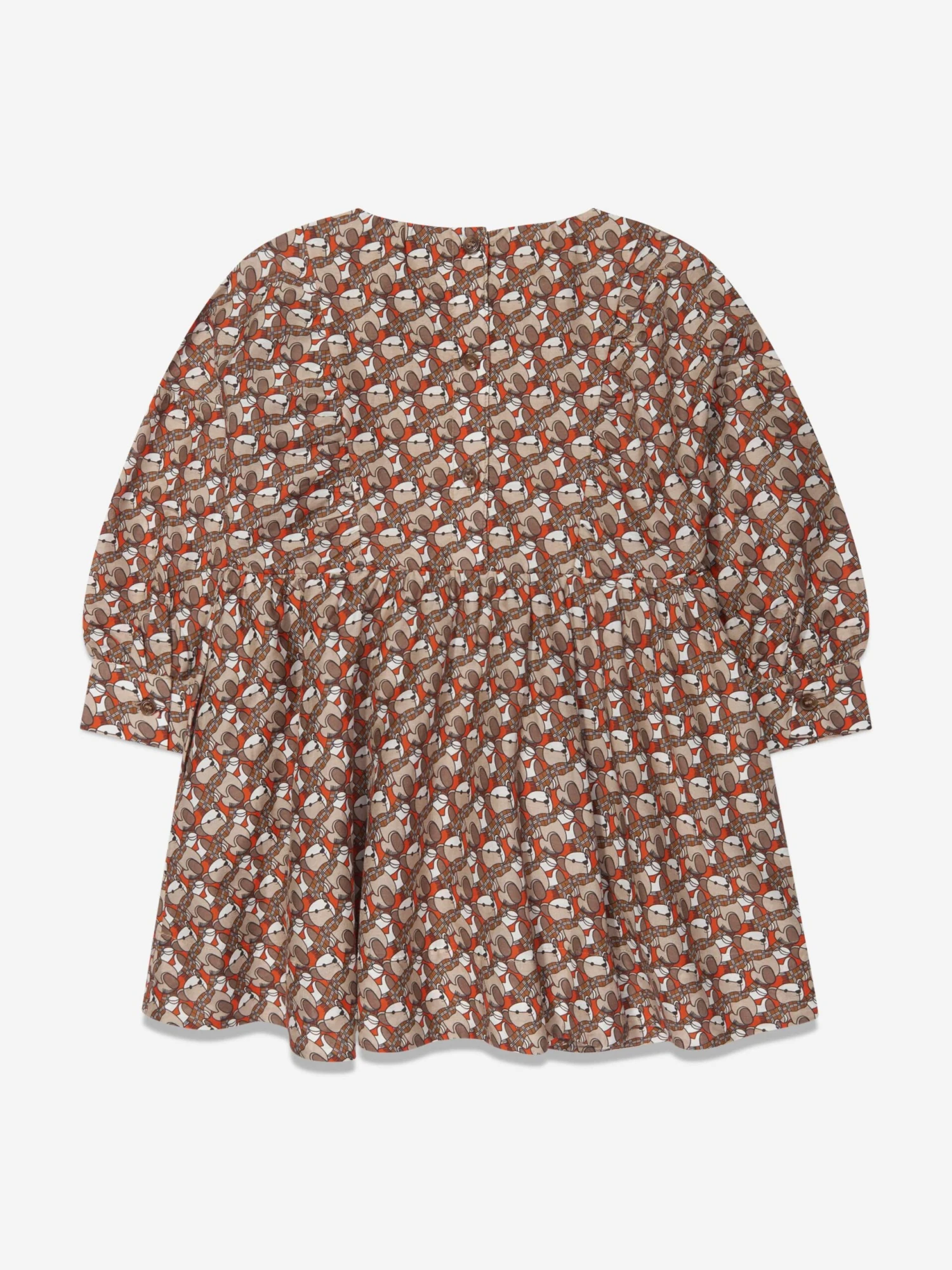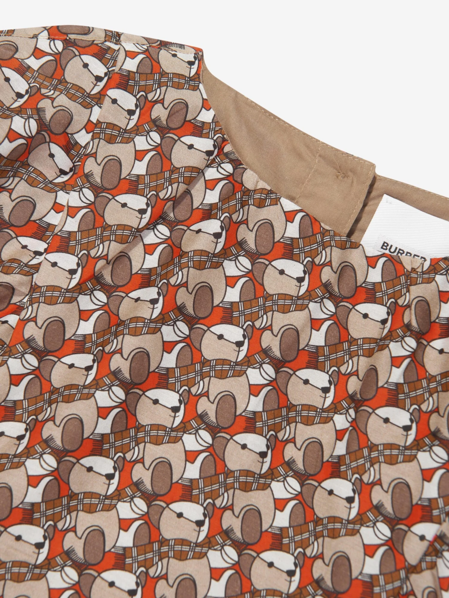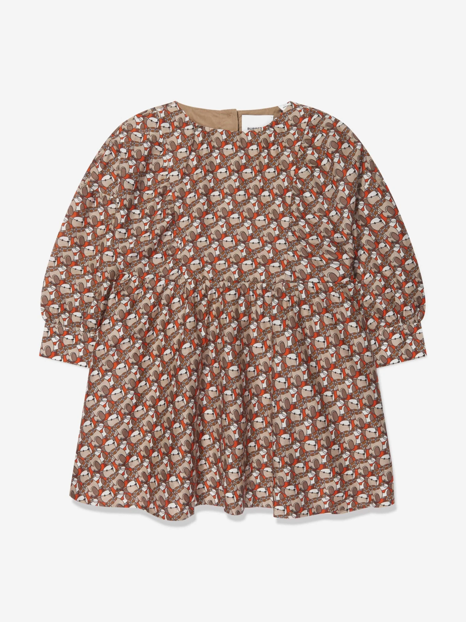 Burberry translate new sustainability properties into technologically advanced aesthetics. This girls orange Elita dress has been incorporated with fastidious precision and vintage charm. Depicted with the brand’s signature teddy wearing a Check scarf, and lined in soft cotton voile. It will be her favourite piece to wear.