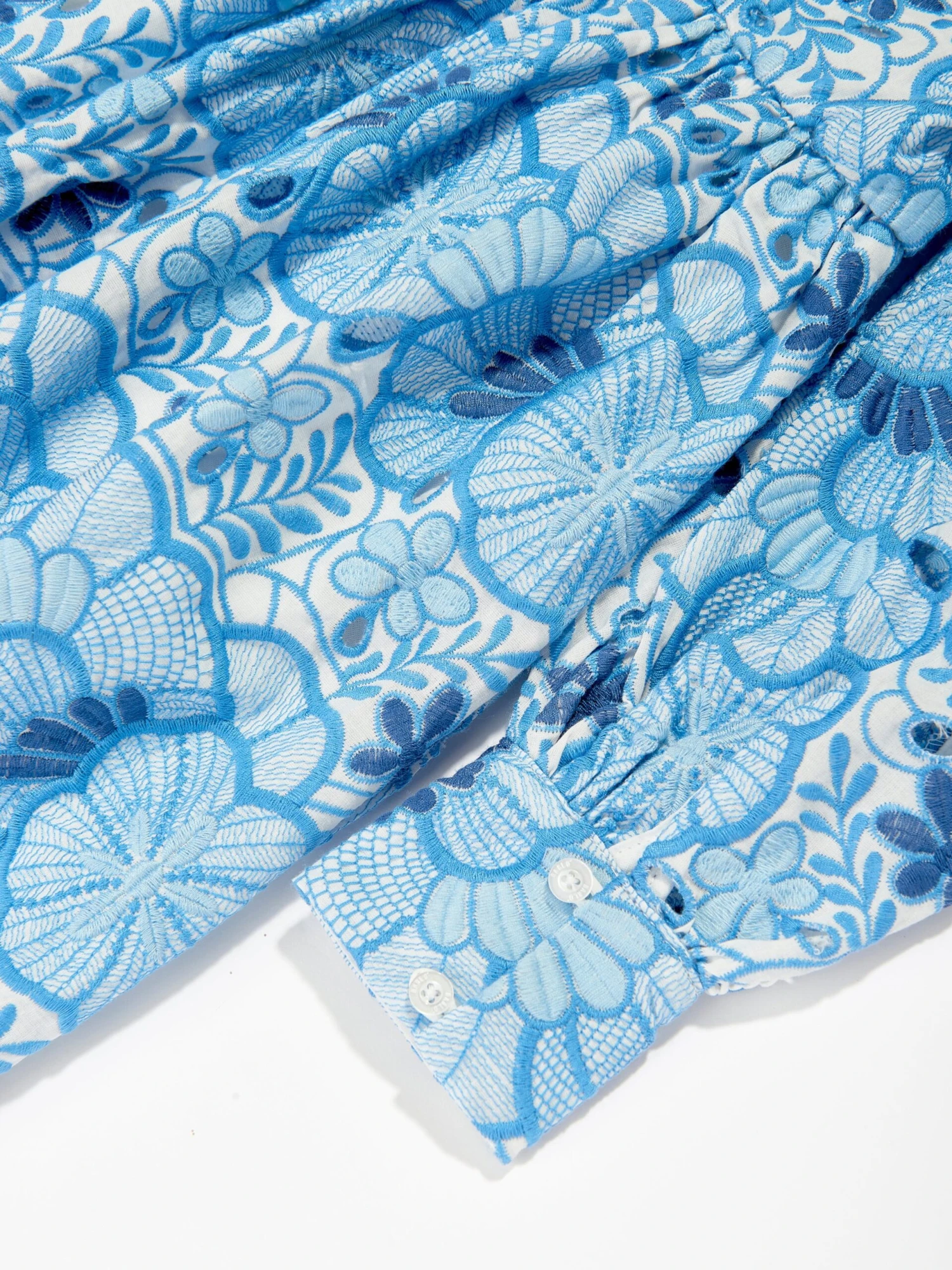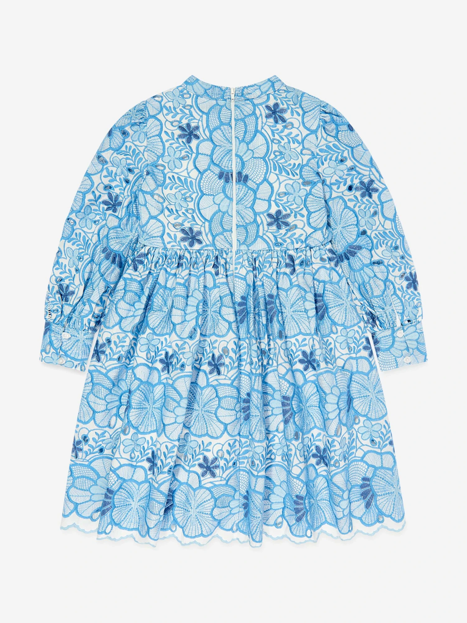 Marlo envision vibrant high quality properties in their beautiful aesthetics. This girls Evangeline dress is reflective of the label’s passion for intricate high quality designs with an innovative twist. Crafted in a bright blue and white cutwork pattern via a broderie anglaise perspective to ensure effortless glamour and playful sophistication.