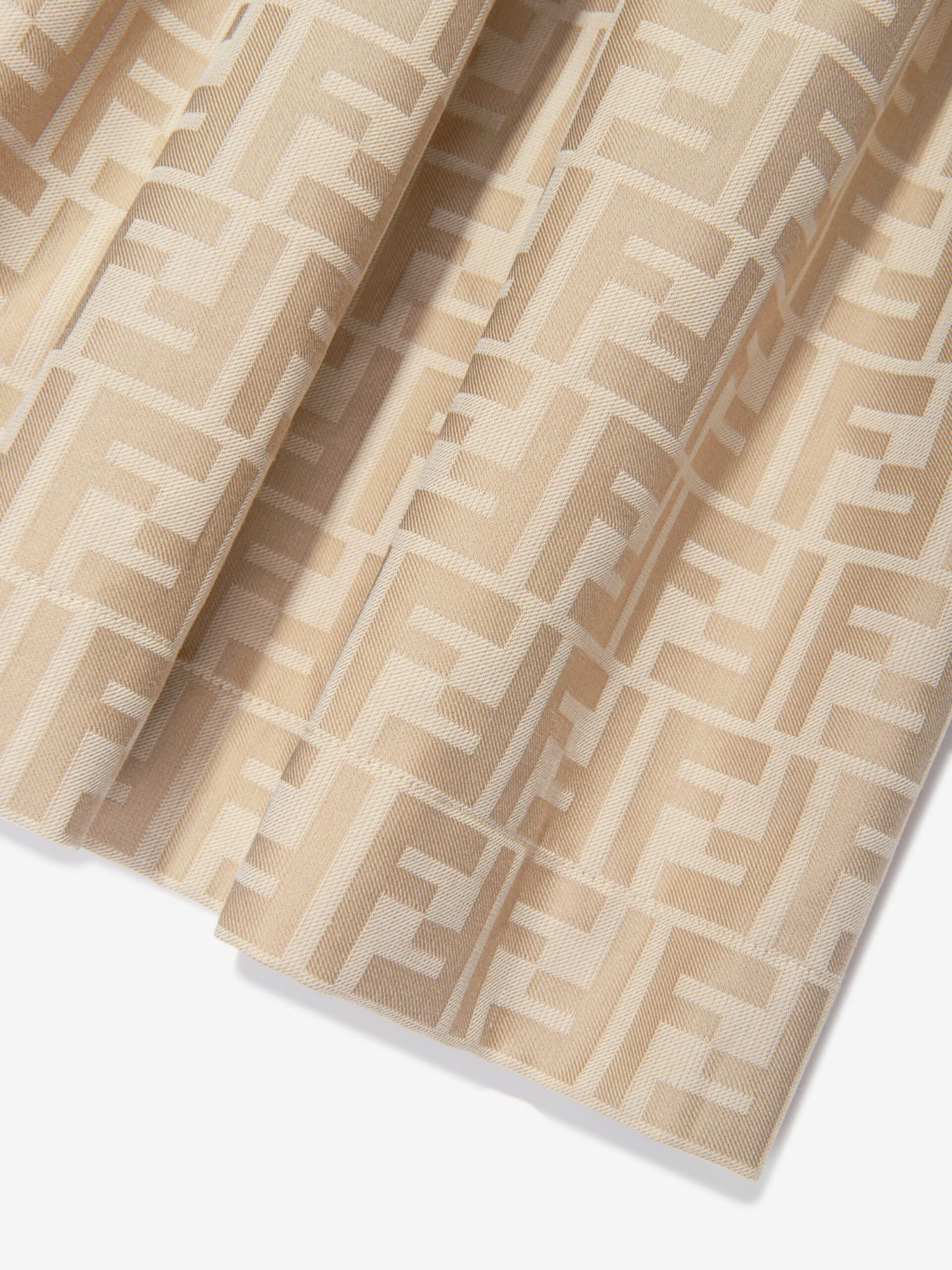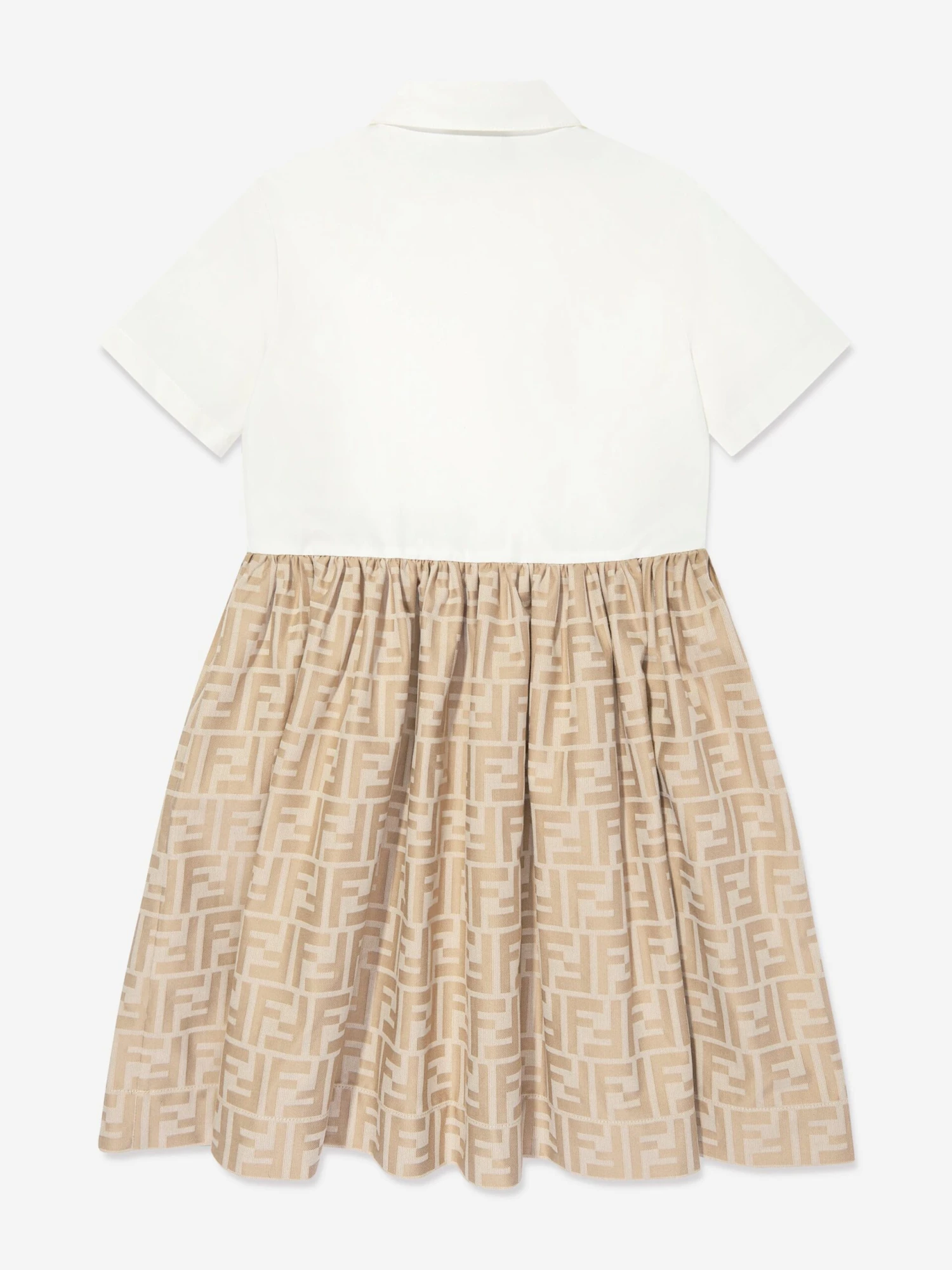 Fendi incorporate the traditional with the modern. This girls trench dress captures the Italian label’s reconceptualised outlook on utilitarian fashion. Crafted with a white poplin top and dainty buttons. It showcases a beige cotton jacquard skirt with an all-over tone-on-tone FF logo design.