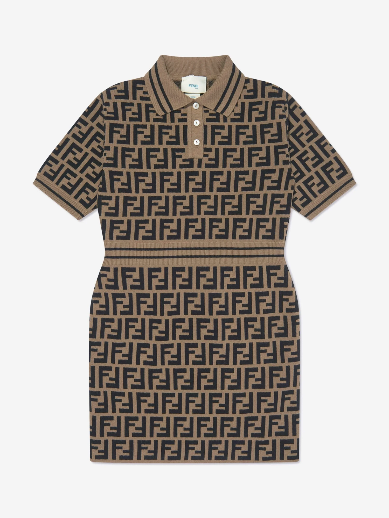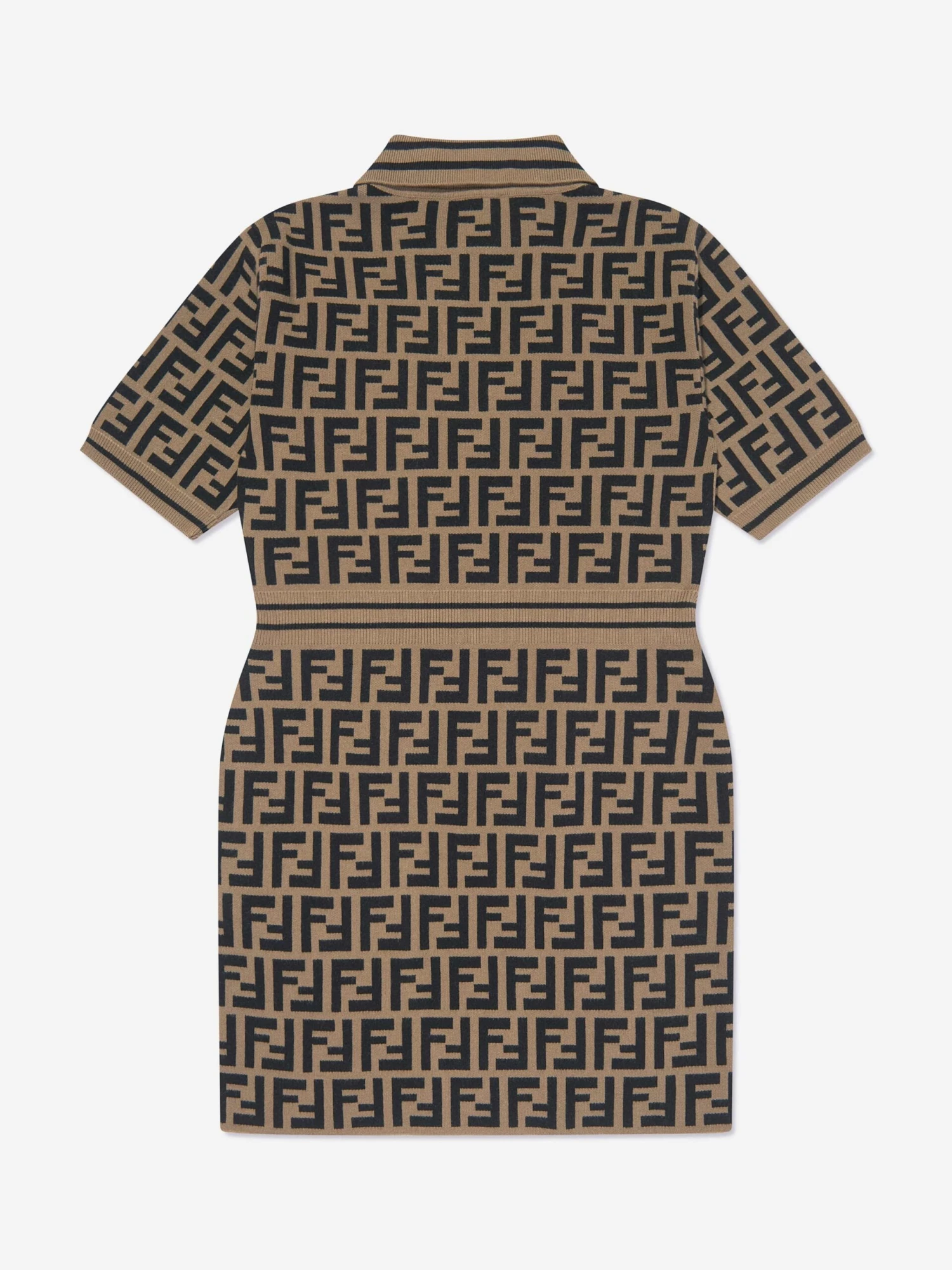 Fendi incorporate the traditional with the modern. This girls polo dress captures the Italian label’s reconceptualised outlook on utilitarian fashion. Crafted in beautiful high quality cotton knit with the iconic all-over tobacco FF logo. It features a knitted fabric collar and stretchy waistband.