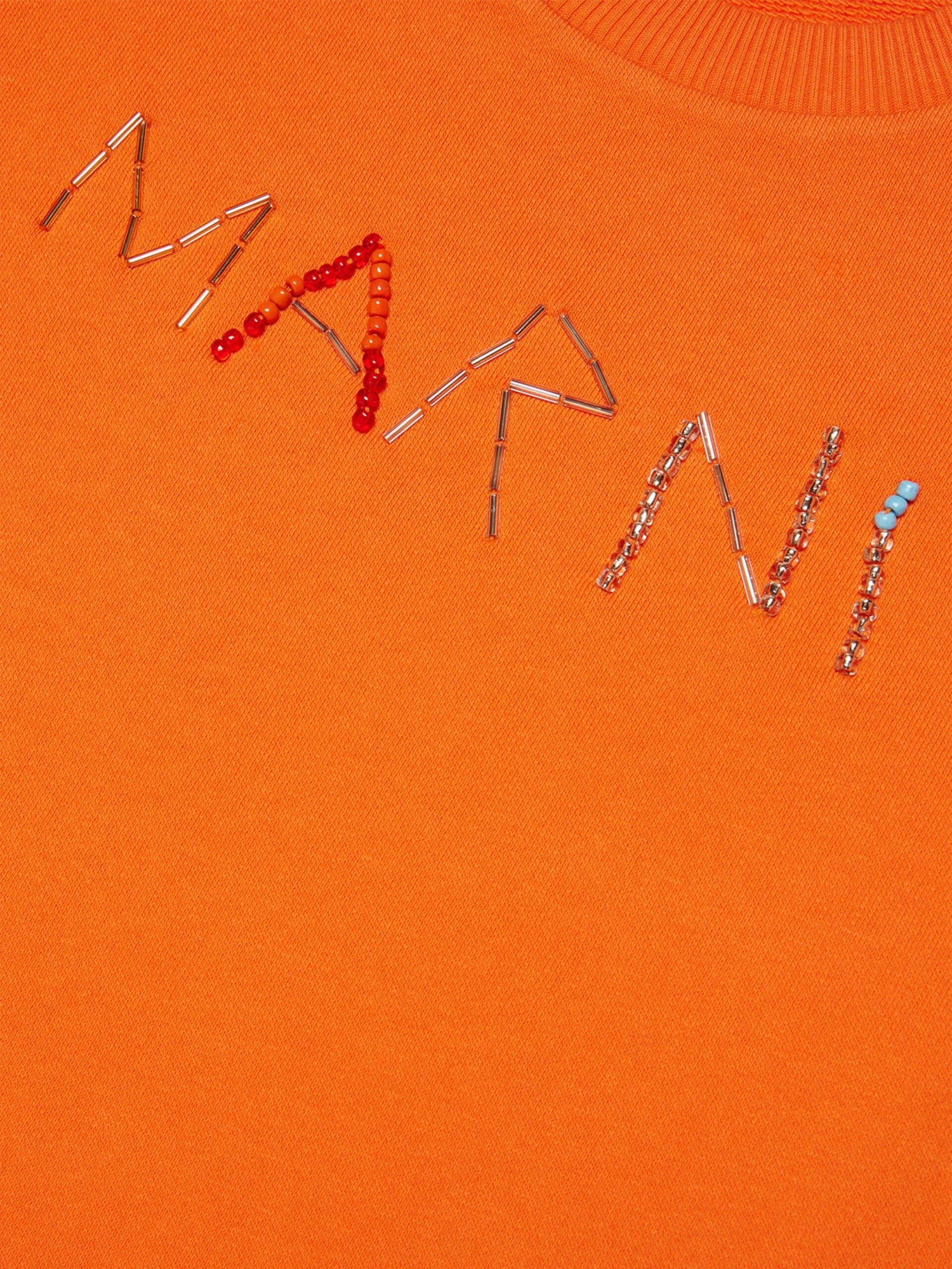 Marni’s unpredictable language and visual use of graphic rigor are embodied in this girls orange t-shirt dress. Crafted in high quality cotton fleece. It showcases a Baguette logo on the front with elegant ribbed details. Both stylish and versatile, it is a perfect summer dress.