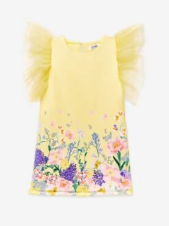 iAMe envision beautiful properties in their occasion wear. This girls floral print t-shirt dress is reflective of the British label’s exquisite manufacturing and intricate outlook. Crafted in beautiful summer floral patterning via mesh tiered frill sleeves on a cotton blended base.