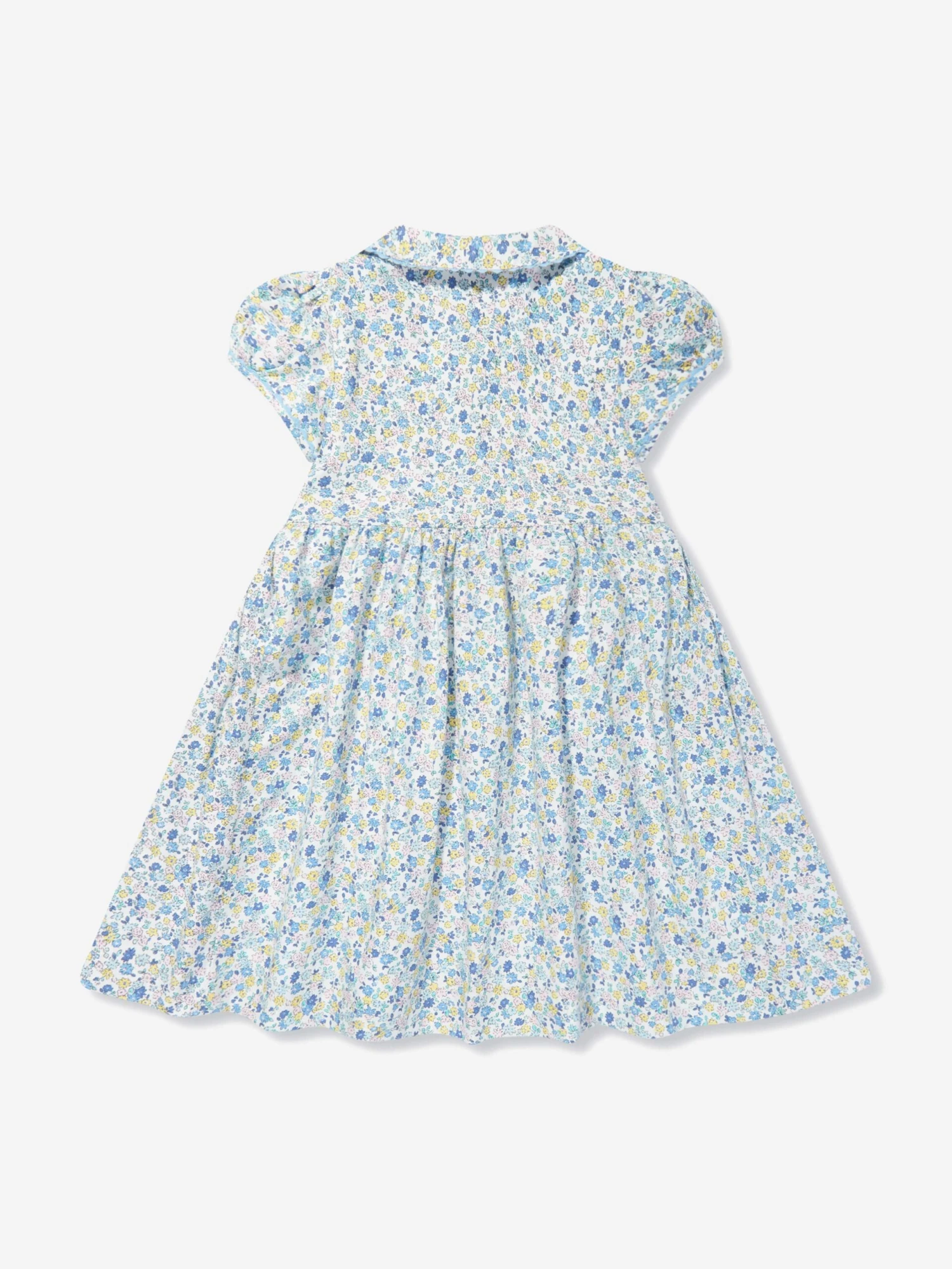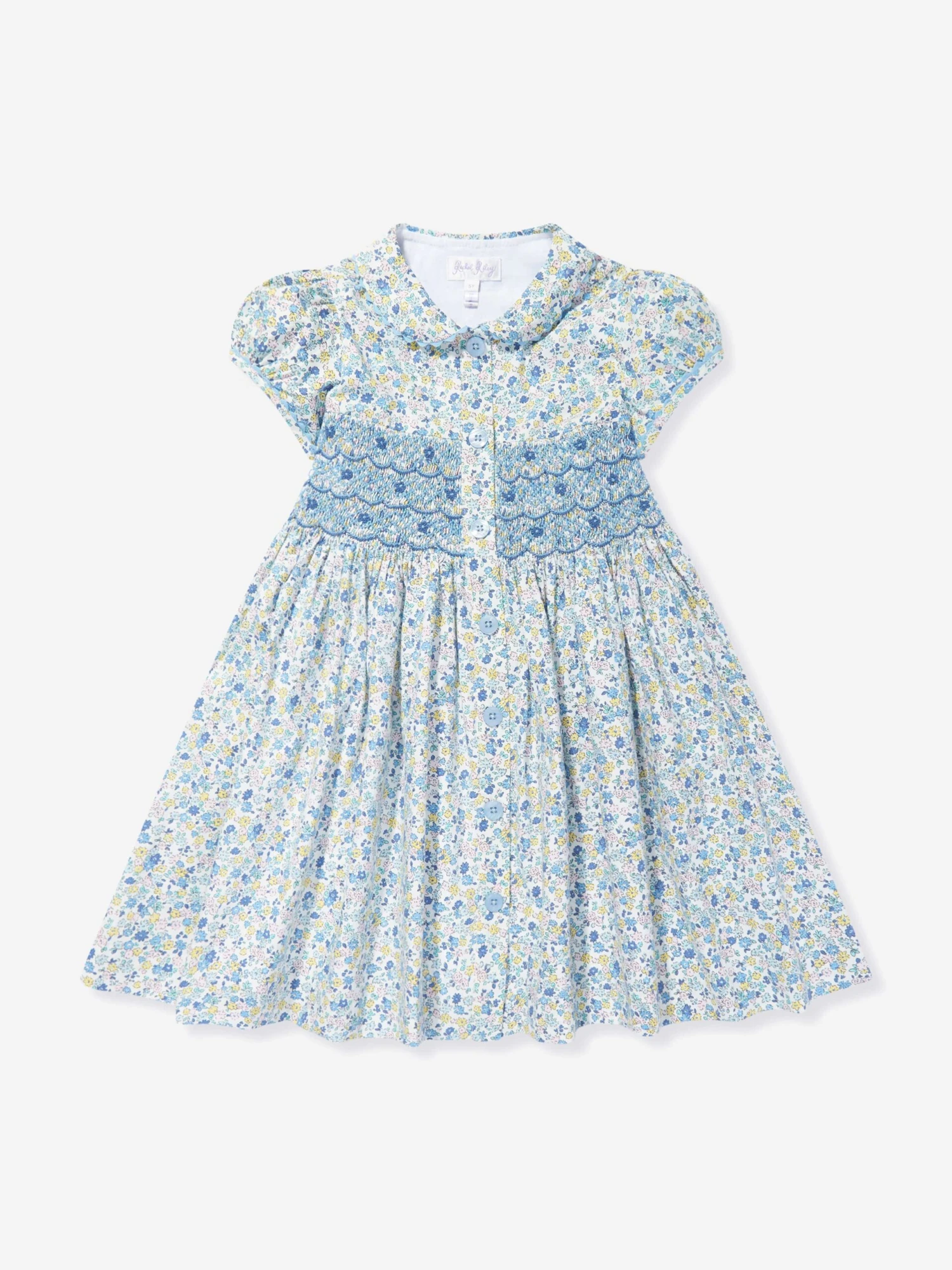 Introducing the Girls Floral Smocked Button Front Dress in Multicolour, a designer piece that embodies high fashion and timeless elegance. Key features include: