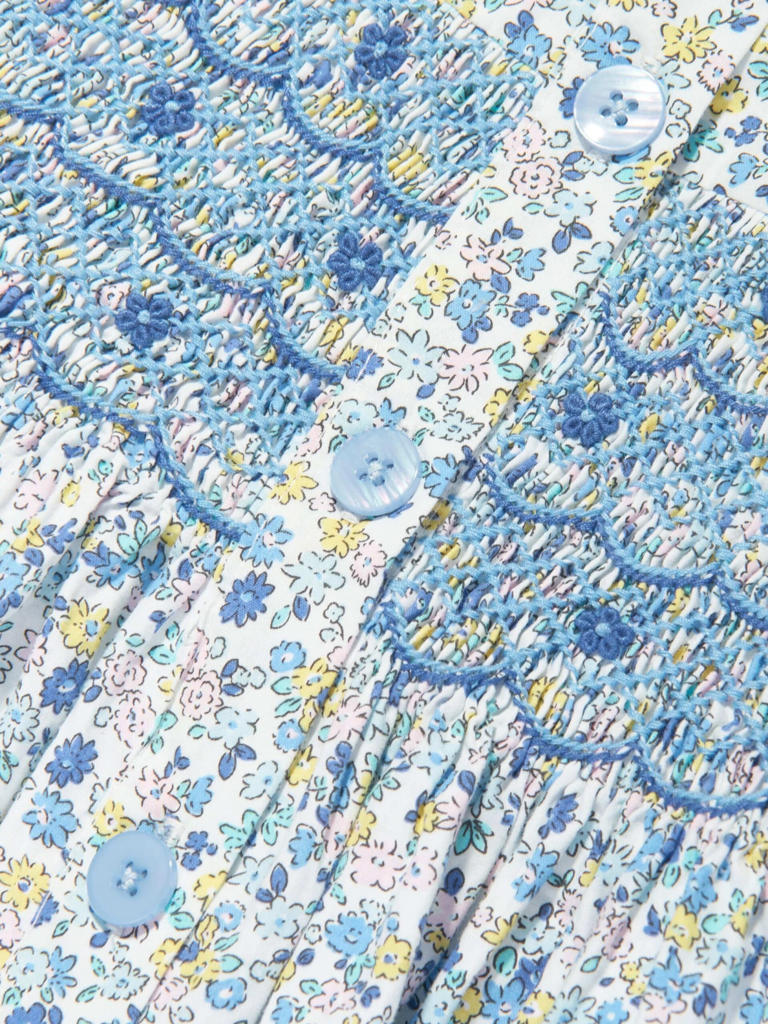 • Enchanting Design: The vibrant floral pattern is coupled with a smocked design and button front, facilitating both style and functionality.
