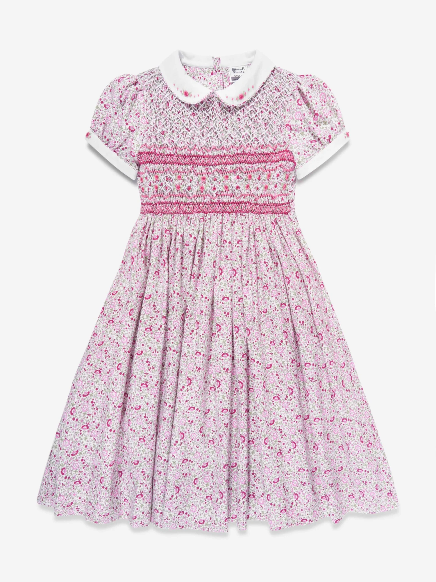 Introducing the Girls Floral Smocked Dress in Multicolour by Sarah Louise, a chic addition to your girl’s AW2024 collection.