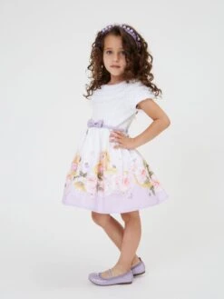 Introduce a touch of class to your little one’s festive collection with Iame’s Girls Flower Print Dress in Blue. This sought-after piece enchants with its exquisite details:
