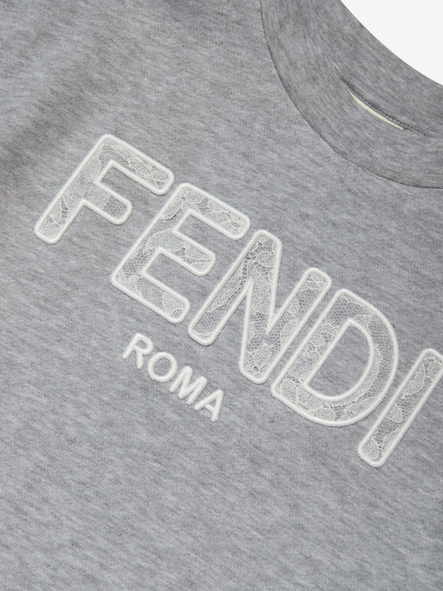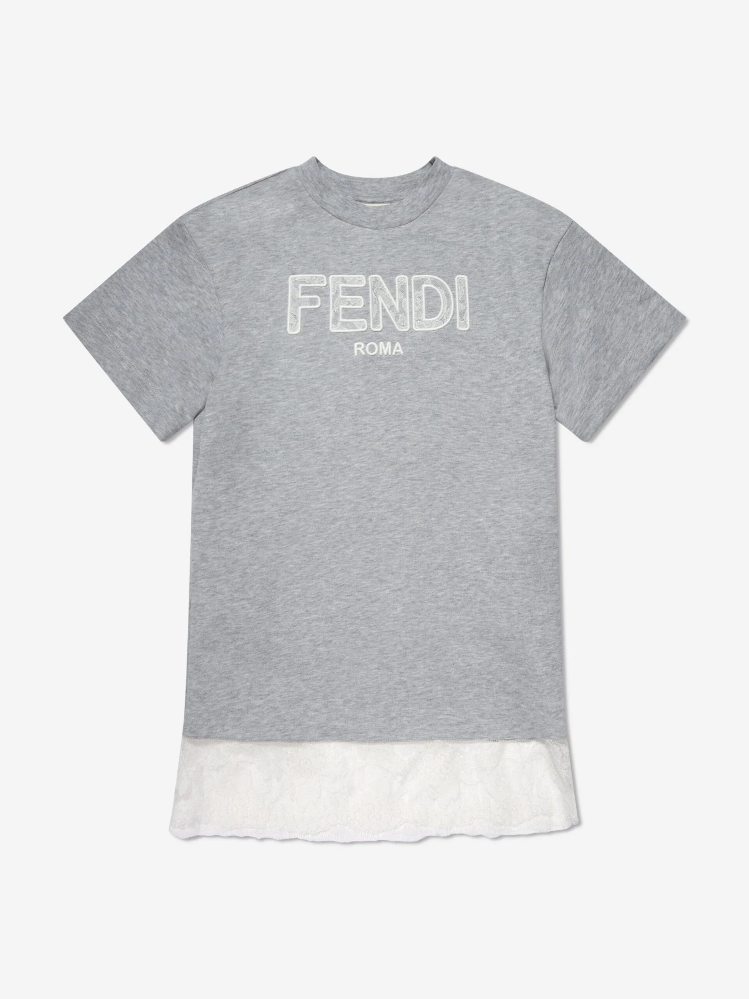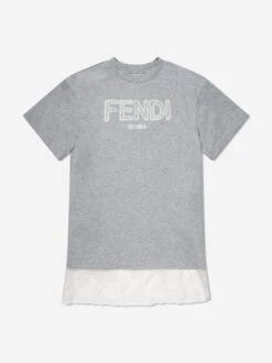 • Makeover Time: Level up your girl’s wardrobe with Fendi’s splendid Grey Jersey Logo Dress. Grab now and let her dazzle in style!