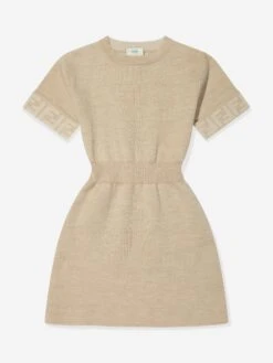Fendi embody passion and Italian elegance in their beautiful aesthetics. This girls knitted logo reversible dress is both captivating and totally versatile. Crafted in refined material, one side features hypnotic FF patterning whilst the other side is in a statement beige shade. Featuring a cinched ribbed waist and trims, she will look and feel divine.