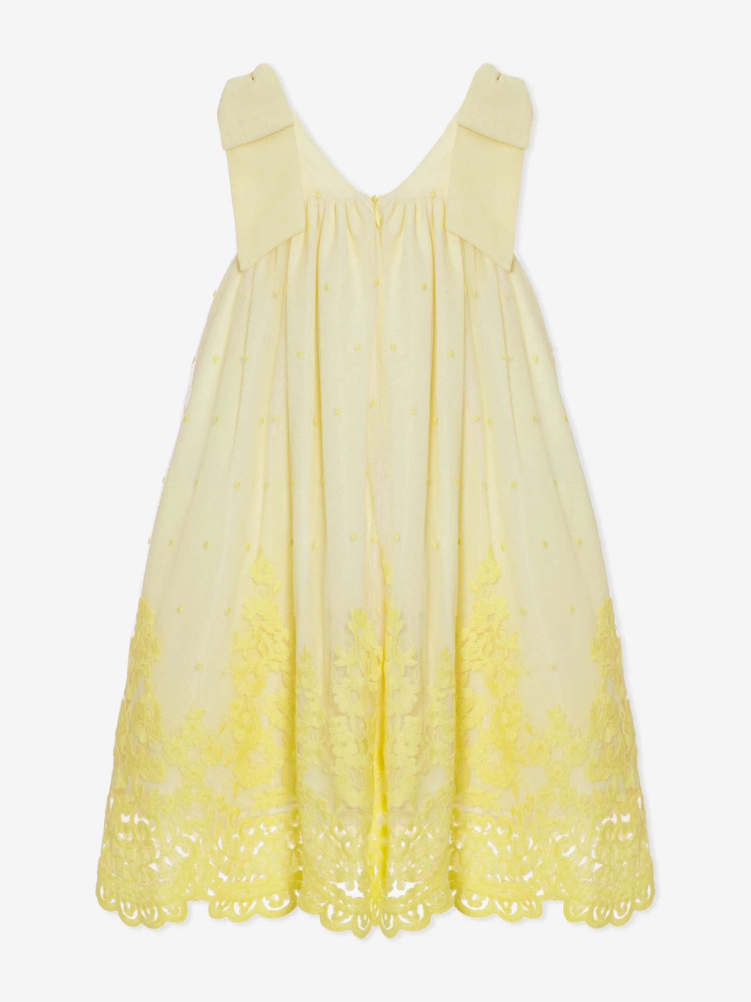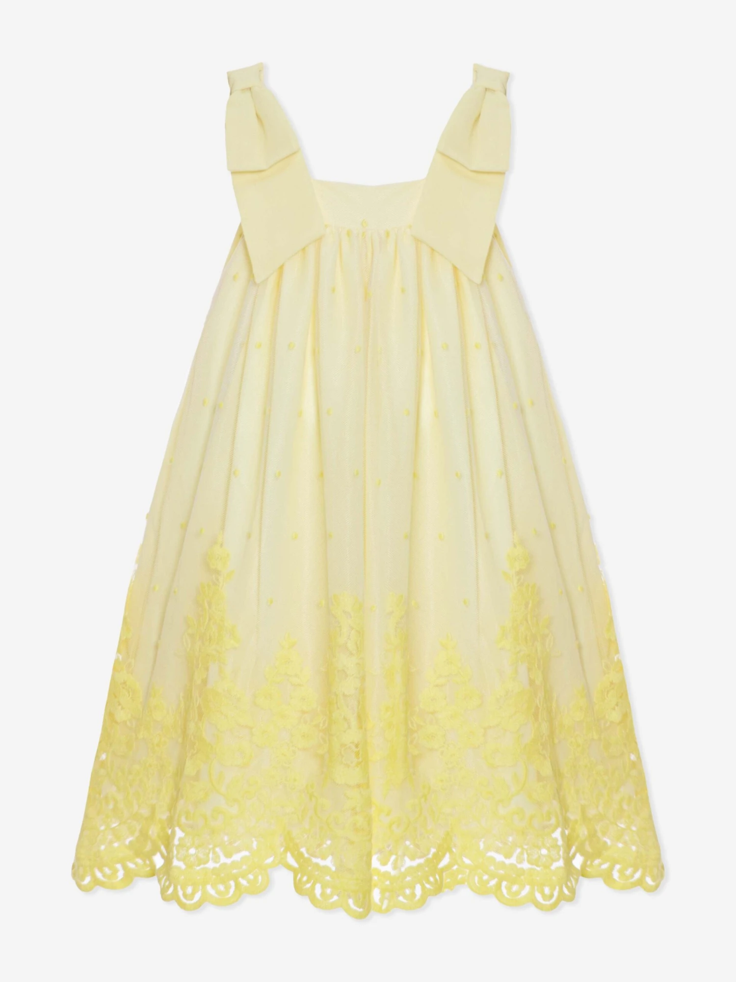 Introducing Patachou’s delightful Girls Lace Trim Sleeveless Dress in Yellow – the ultimate stylish choice for those cherished holiday moments. Key features include: