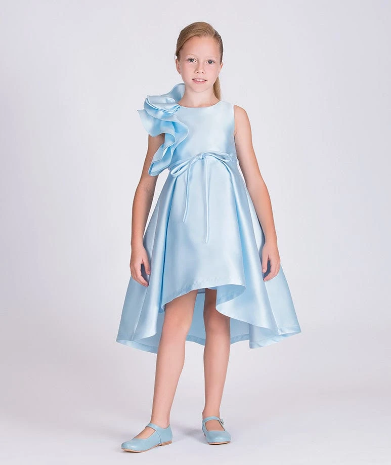 Introducing Mama Luma’s Girls Large Bow Occasion Dress in a captivating Blue, tailored for the Eid occasion. Unique features include: