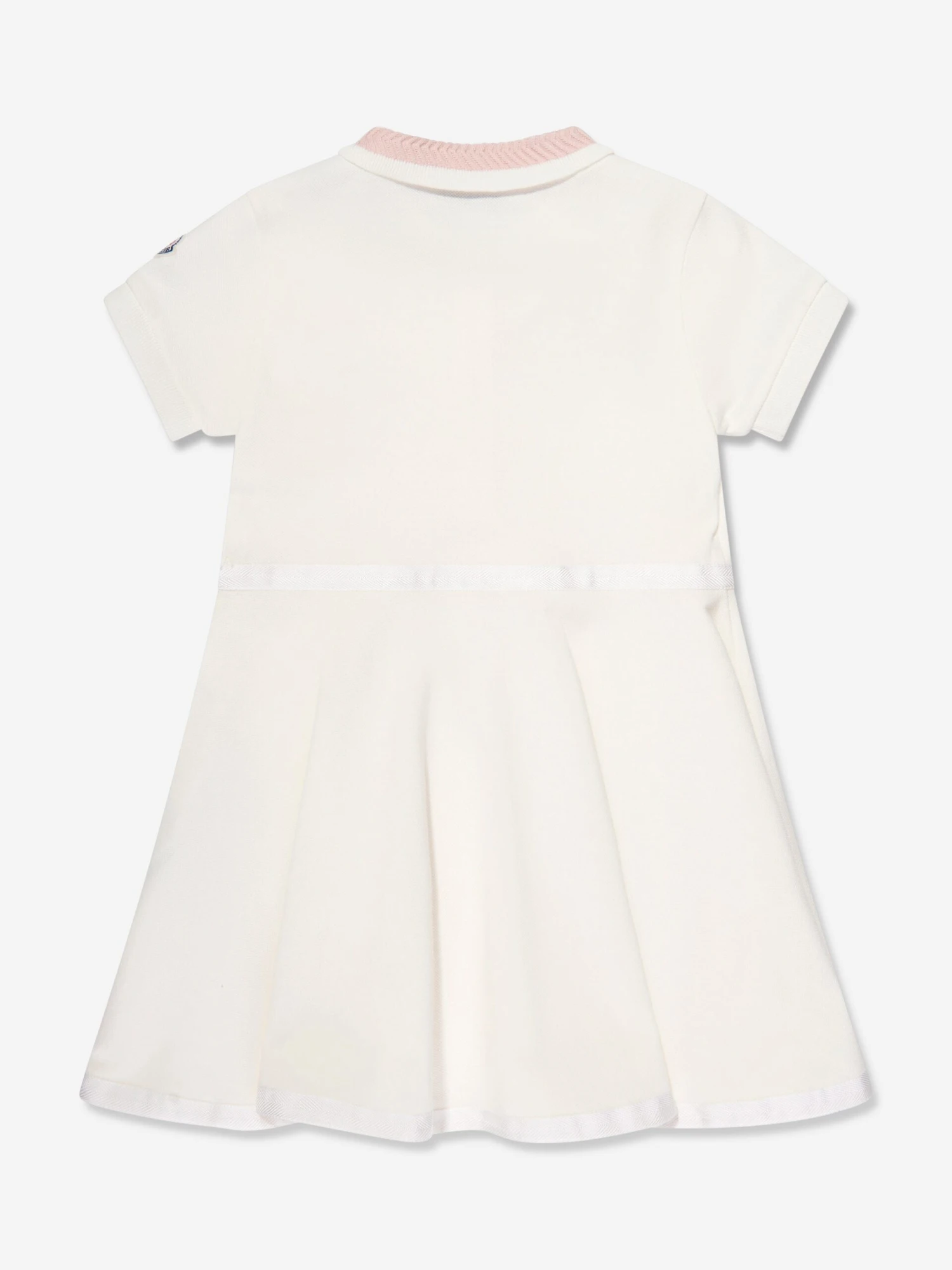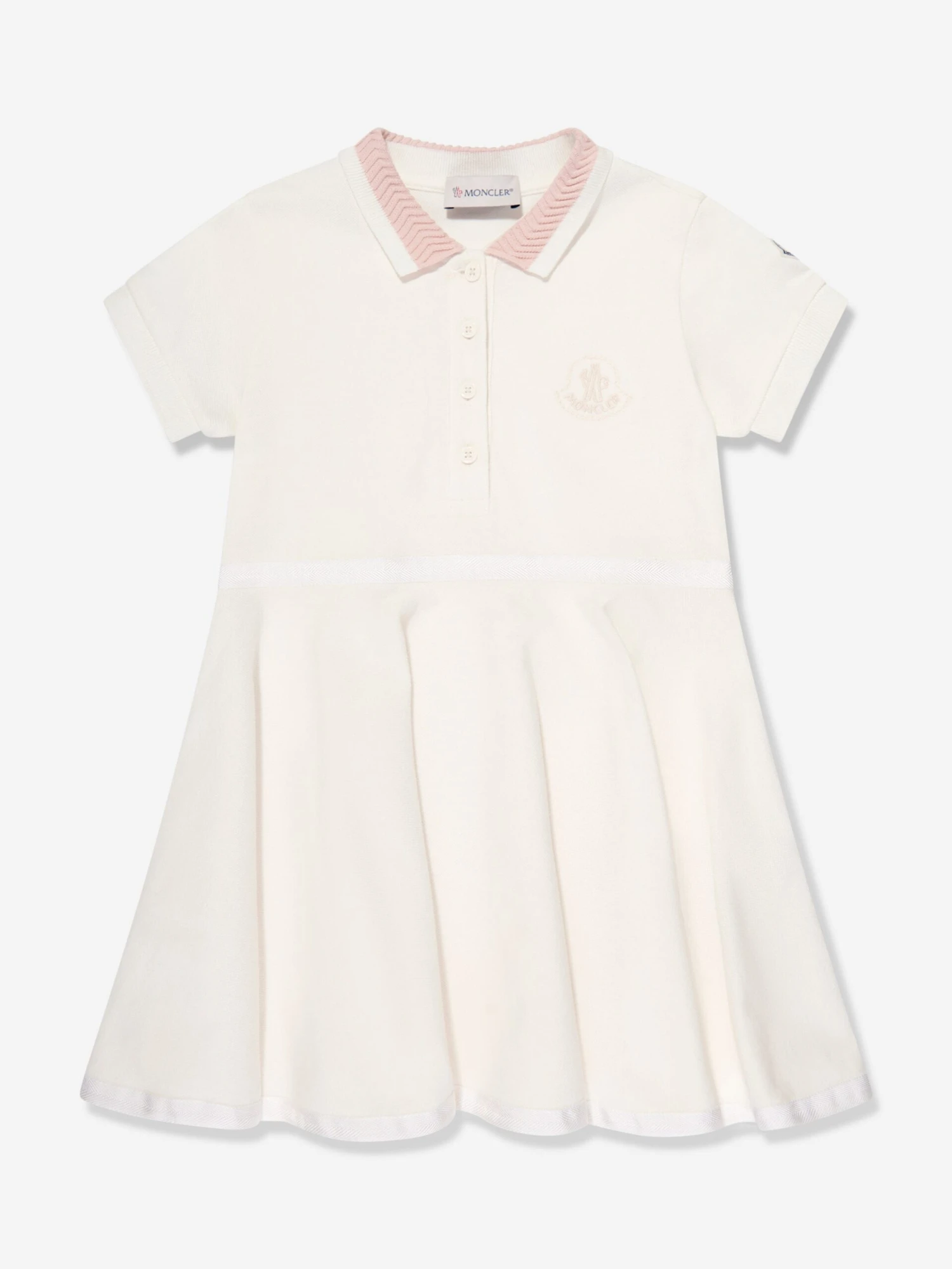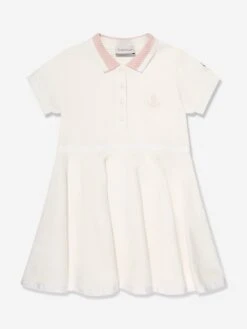 Moncler reincarnate outdoor wear into beautifully crafted abstracts reminiscent of the French Alps. This girls white polo dress captures the label’s passion for sleek, innovative designs. Made in ribbed cotton with front pearlescent buttons, a stitched intricate collar, a band on the waist and flared hem.