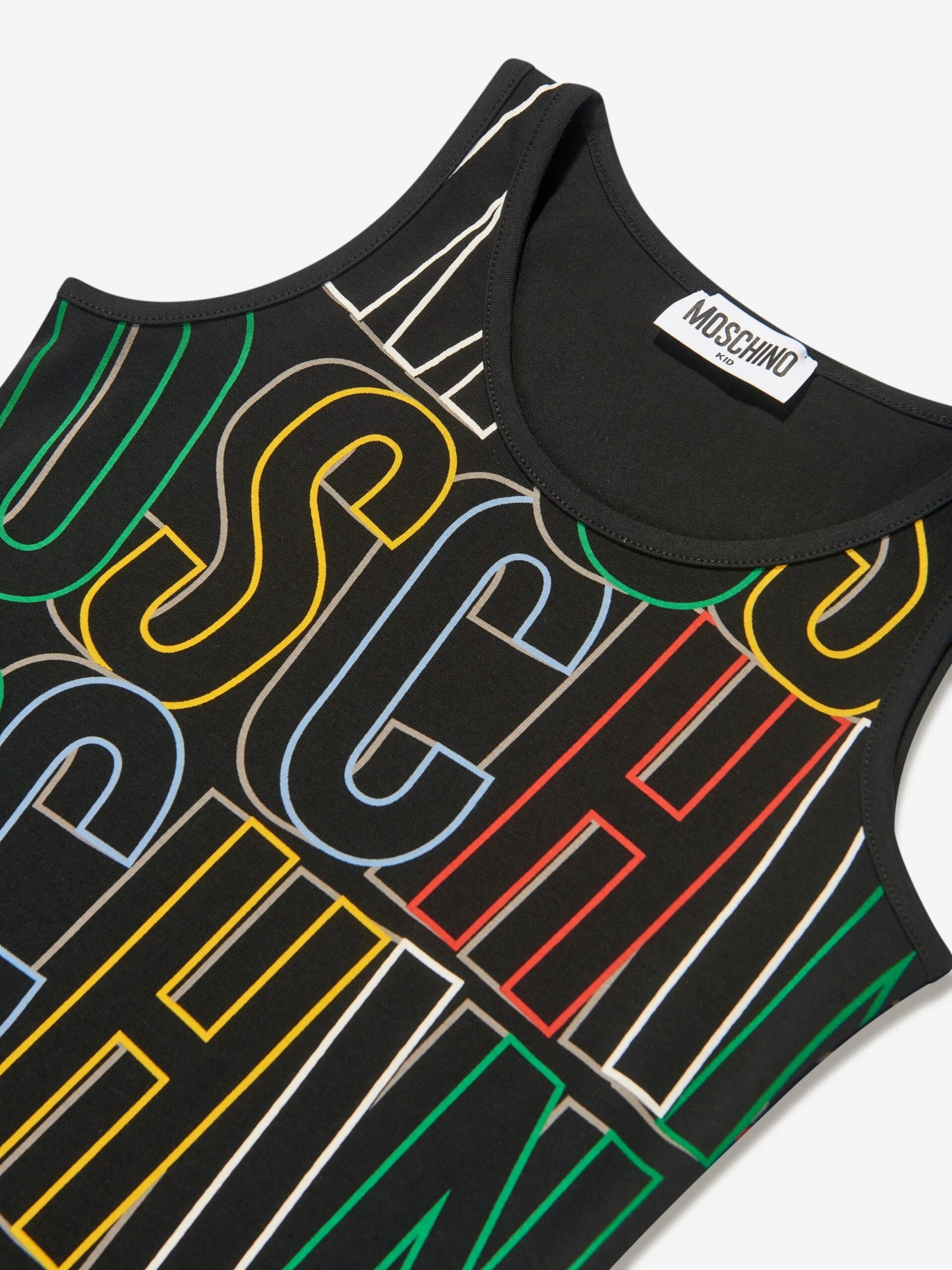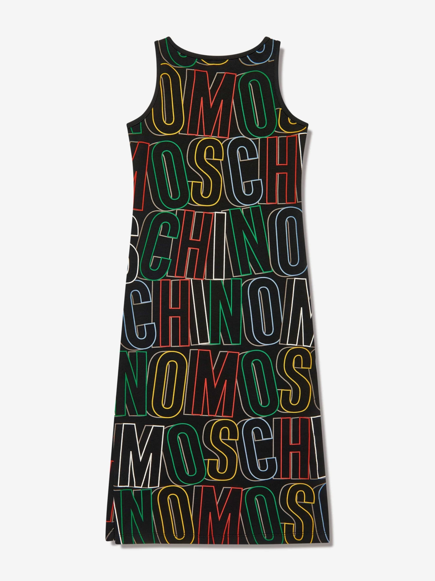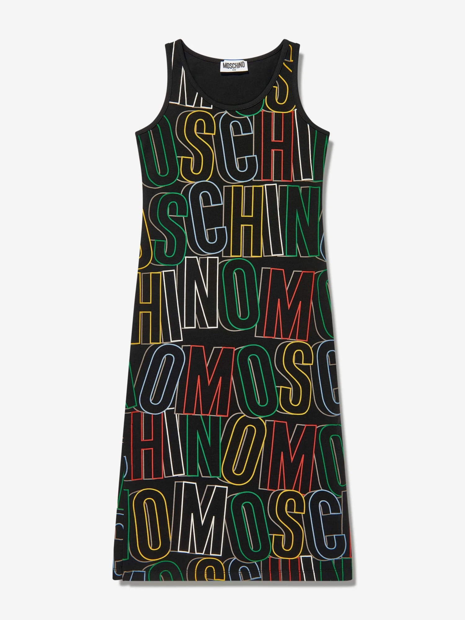 Moschino exaggerate unparalleled elegance and construction in their exquisite designs. This girls dress amplifies the Italian label’s passion for reconceptualised vintage wear. Crafted in a sleeveless design with beautiful Moschino multicoloured all-over printing and a spliced hem.