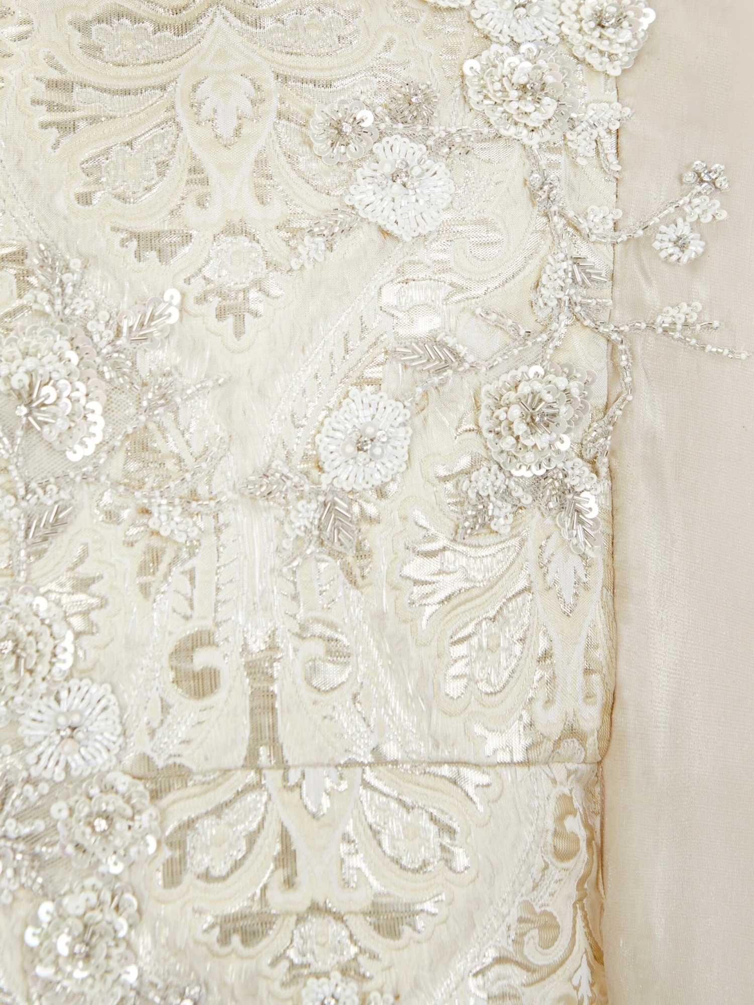 Maison Ava apply traditional techniques to their precious savoir-faire abstracts. This entirely handmade Phoebe girls ivory dress captures the label’s sophisticated quality and mesmeric outlook. Made in a refined embroidered material. It features satin organza shawls down both arms with a crew neck and golden finish. Every princess will look and feel divine. Made by expert artisans in the brand’s atelier to ensure everlasting happiness.