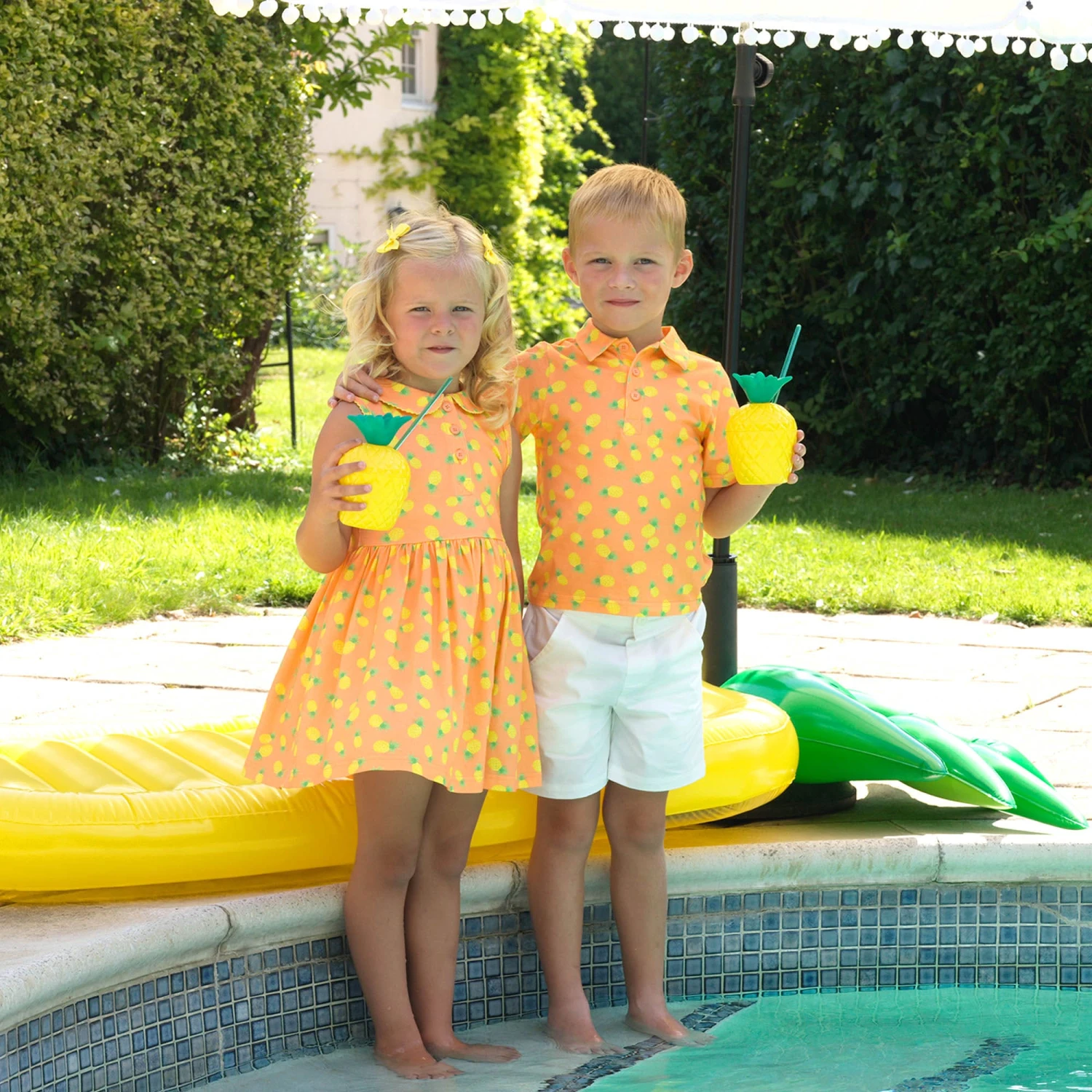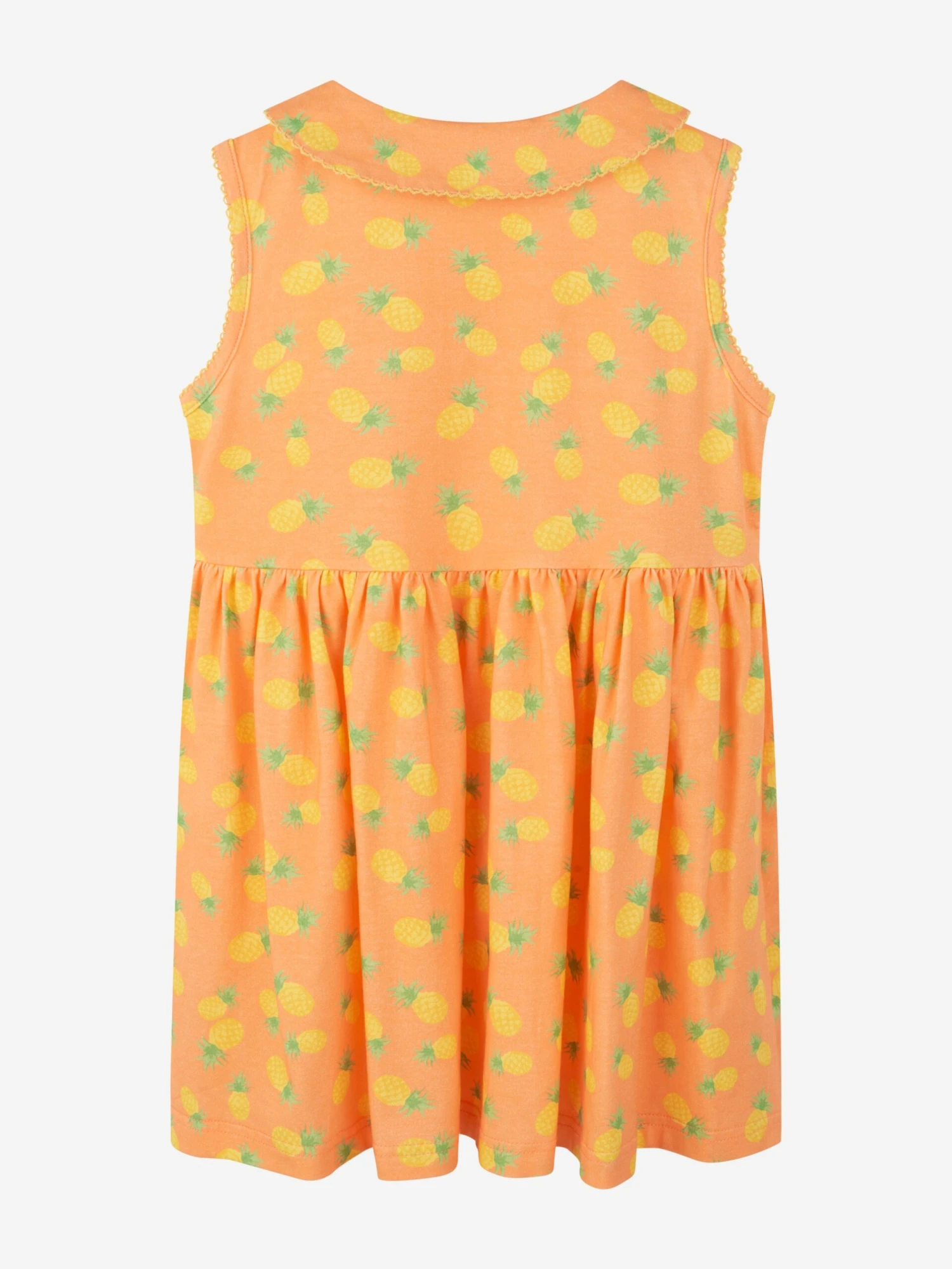 Elevate her style with Rachel Riley’s girls pineapple orange dress. This charming piece blends playful elegance with tropical vibes, showcasing a vibrant pineapple print on high-quality fabric. The sleeveless design adds breezy sophistication, making it perfect for warm days and special occasions. Capture the spirit of sunny escapades with this delightful ensemble by Rachel Riley.