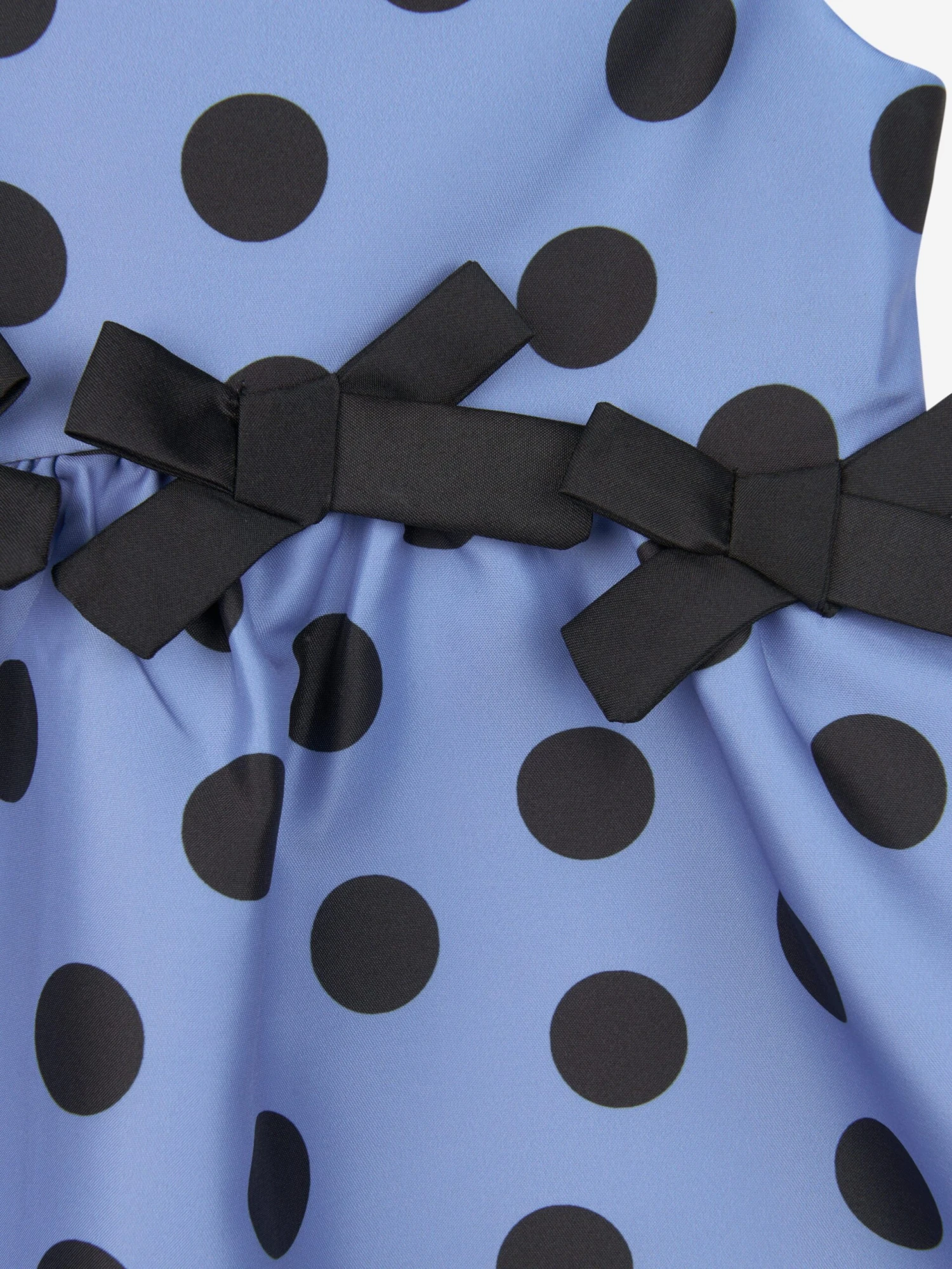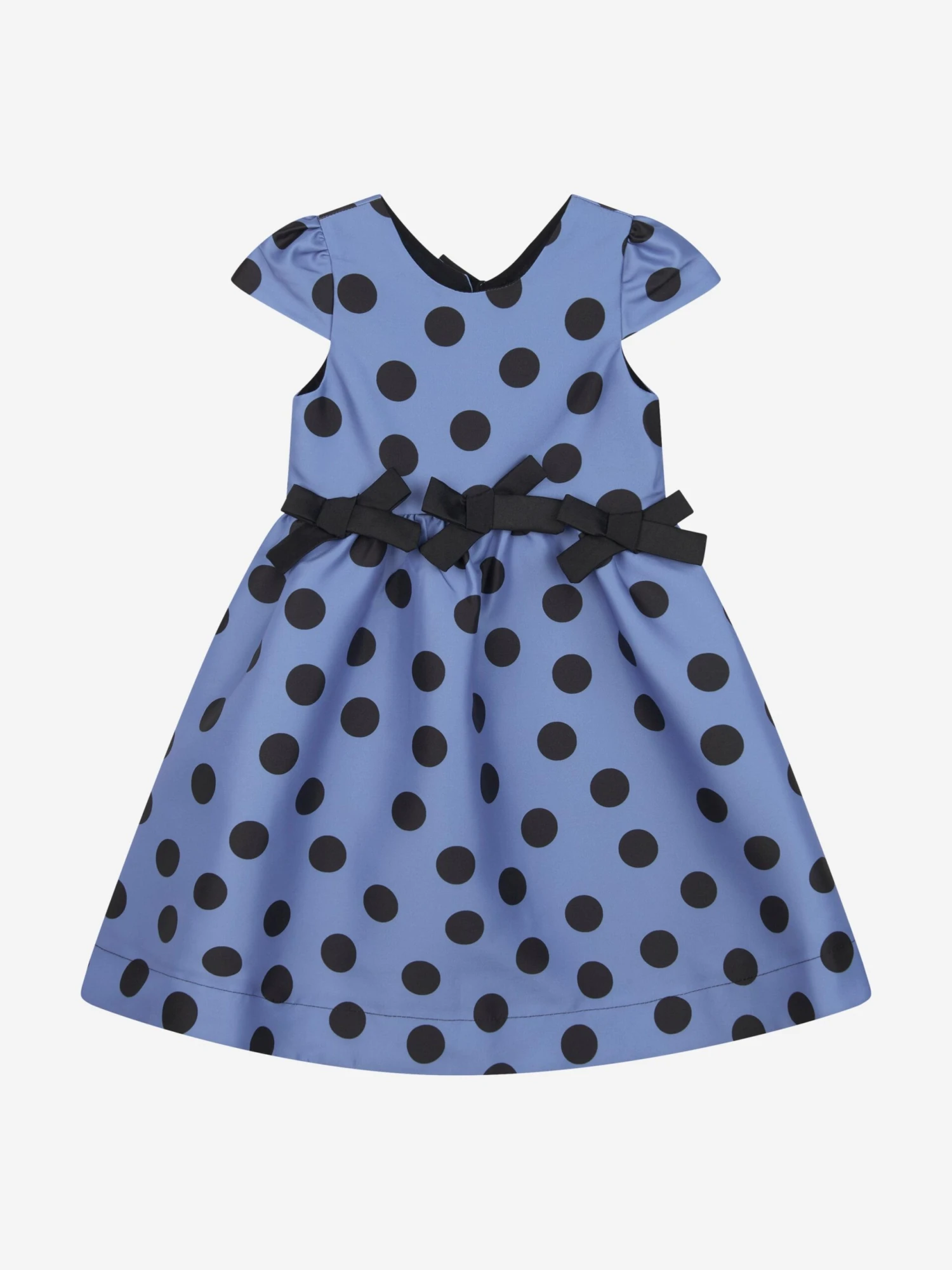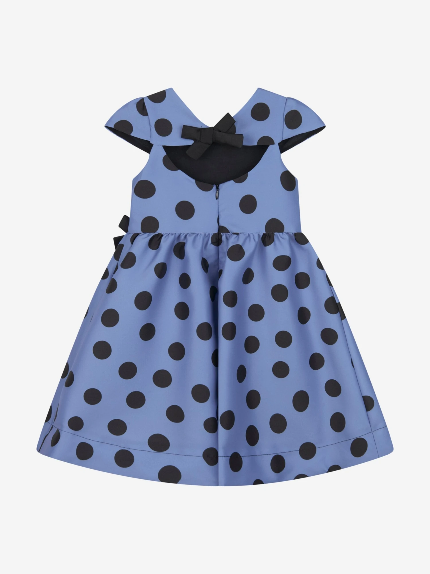 Mama Luma inspire new generations by utilising traditional designs into finely cut abstracts. This girls blue polka dot occasion dress captures the label’s fun innovative personality. Crafted in an A-line layered combination material with a back cut out, multiple bows and a vibrant patterning. She will be obsessed with such a flamboyant piece.