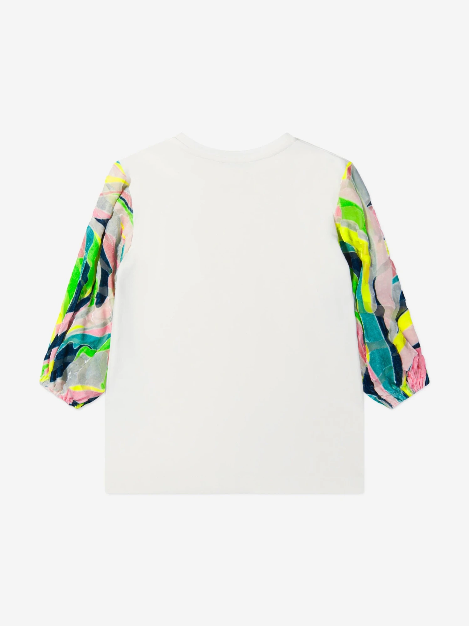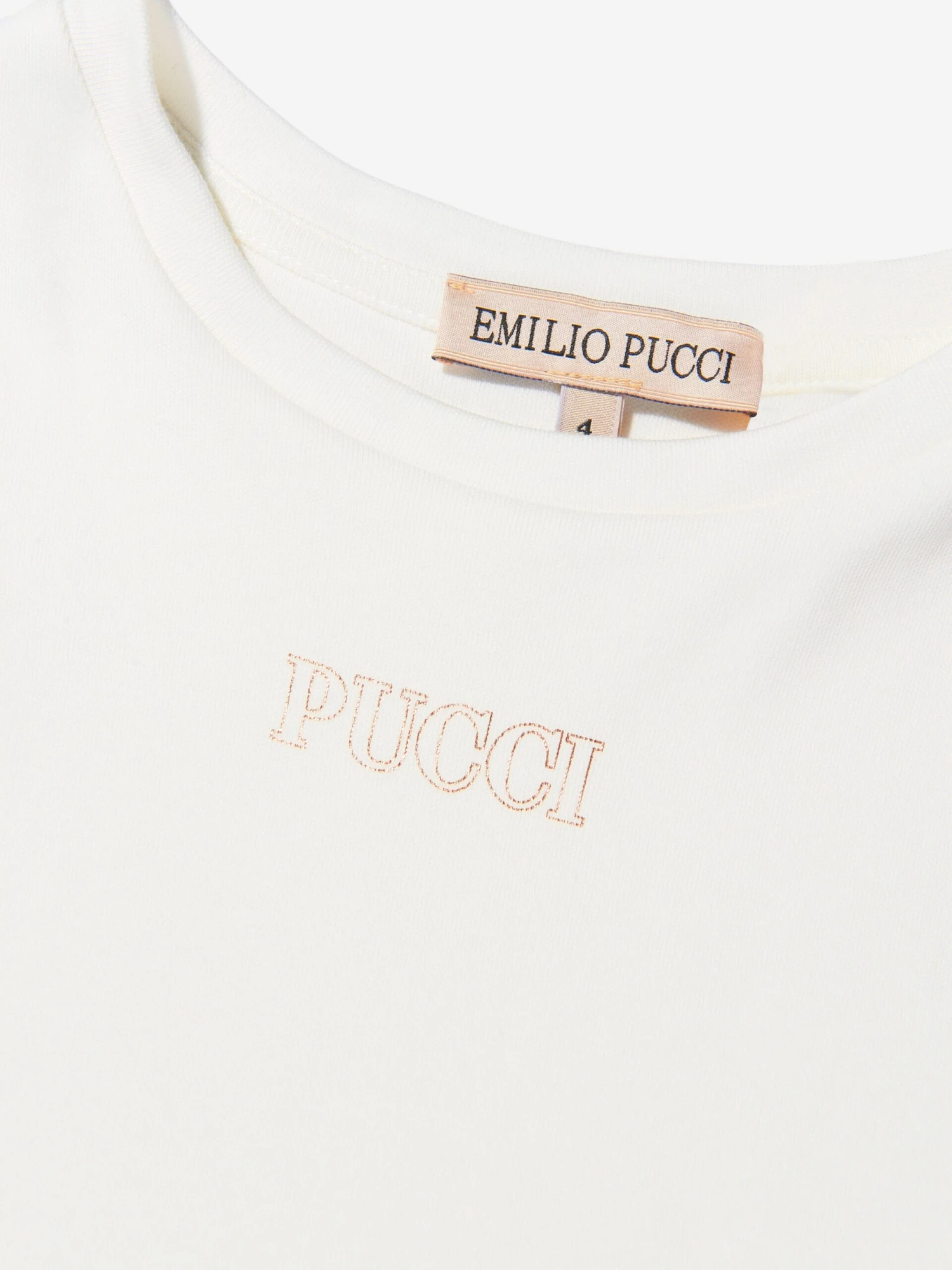 Unveiling the Girls Printed Sleeve Logo Dress by Emilio Pucci, an eye-catching addition to your little one’s wardrobe! Coming in a sophisticated Ivory shade, this piece perfectly weaves elegance and playfulness.