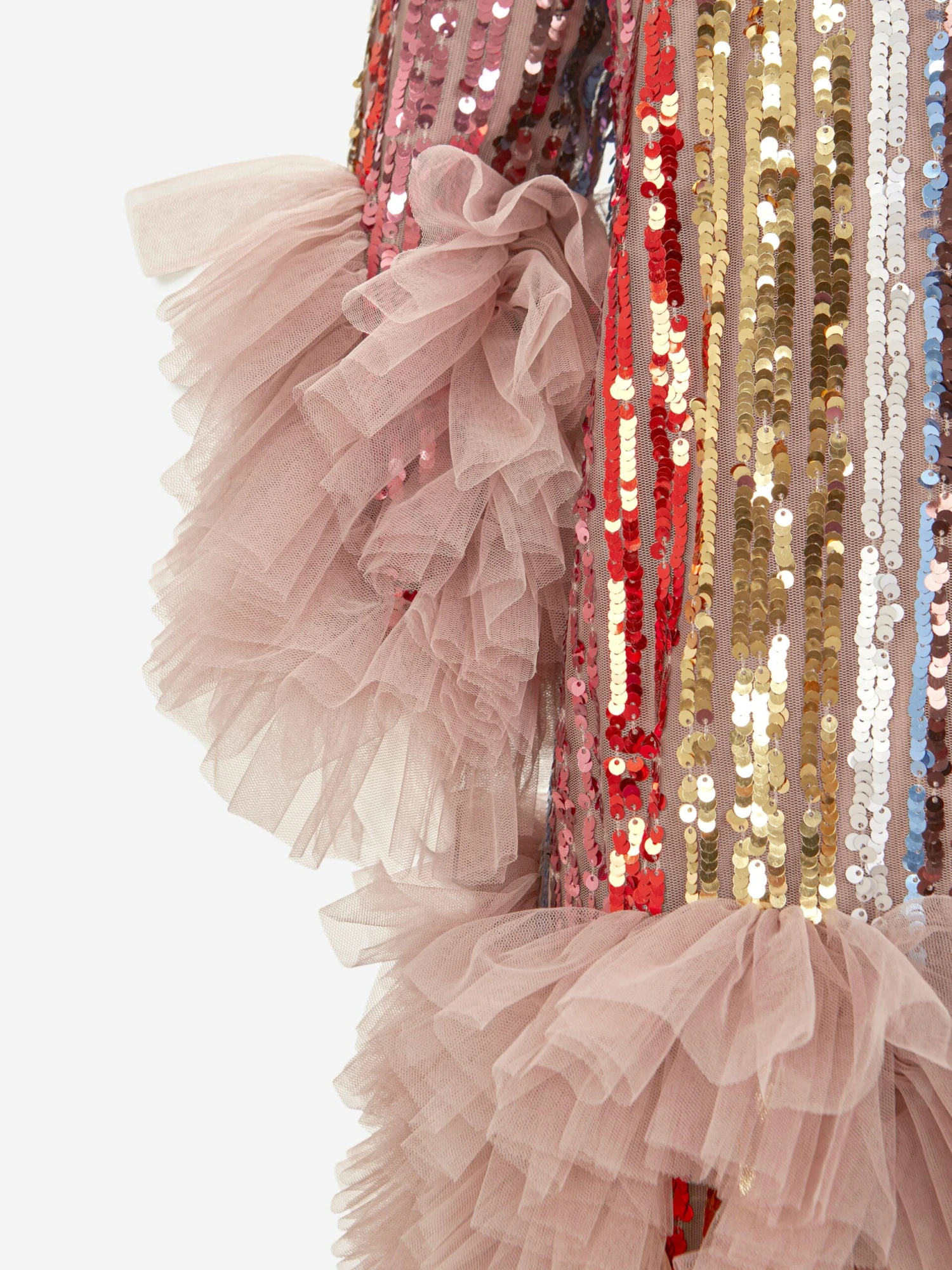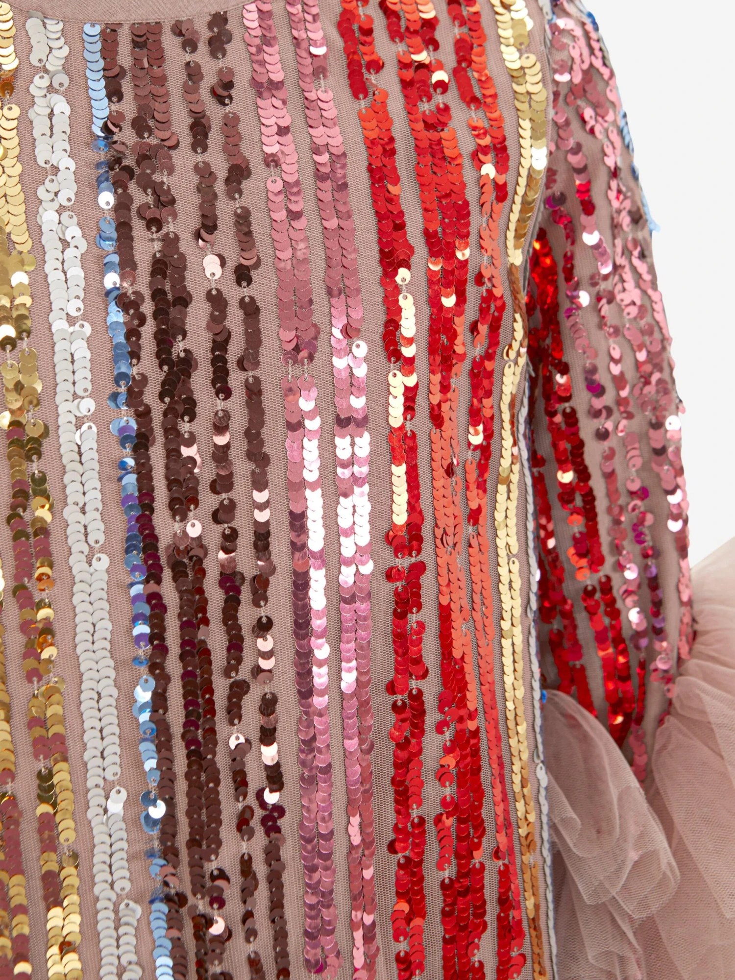 Maison Ava reconceptualise haute couture into beautiful abstracts. This girls long sleeve rainbow glitter ruffle dress in multicolour captures the label’s refined portfolio. Every little princess will look adorable. Meticulous care made by expert artisans in the brand’s atelier will ensure everlasting happiness.