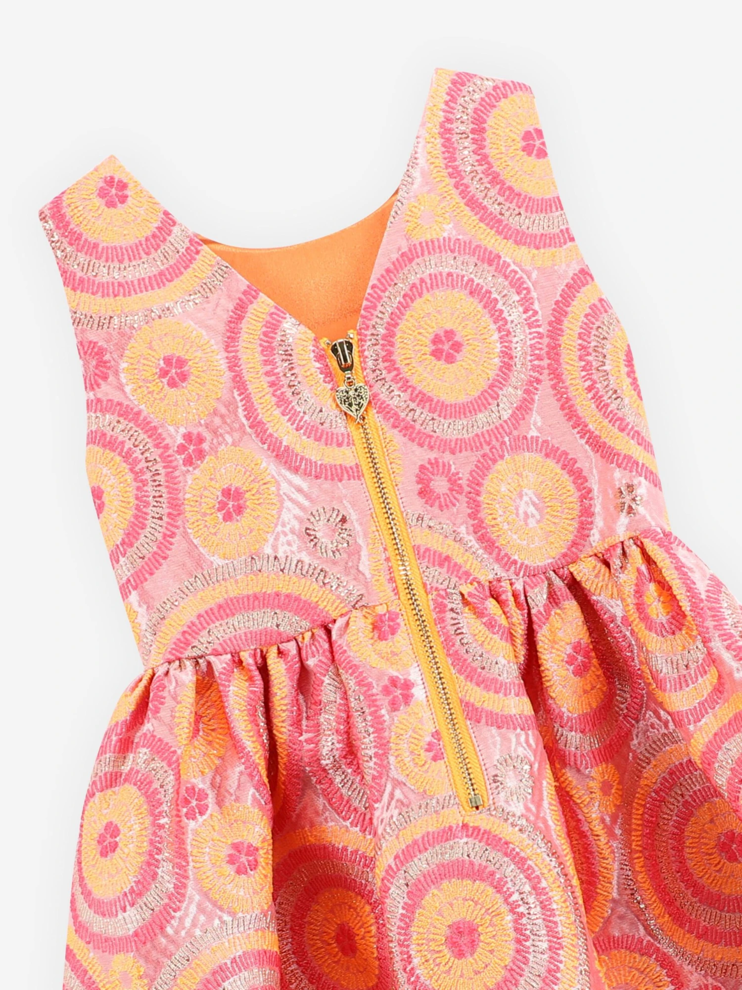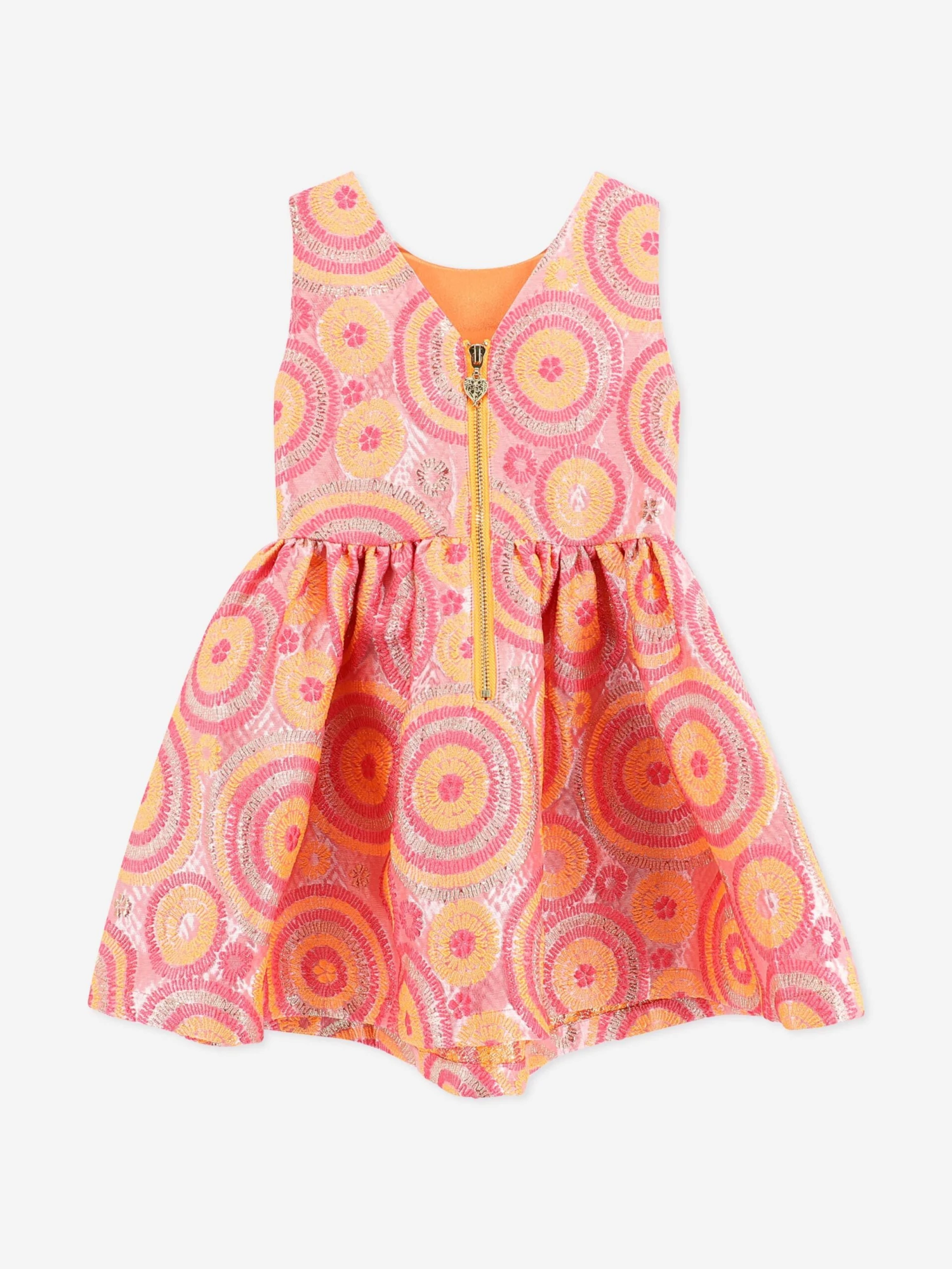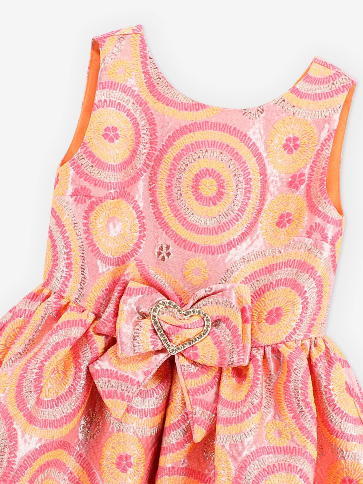 Angel’s Face incorporate beautiful material into their refined aesthetics. This girls orange Ruby circle pinafore dress captures the label’s passion for sleek, enigmatic detailing. Crafted in jacquard detail via a gathered skirt, a diamante buckle with a detachable bow. She will be obsessed.