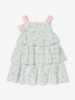 Dolce & Gabbana incorporate innovative materials with vintage abstracts into coexisting spaces. This girls dress embodies sleek and enigmatic sophistication. Crafted in refined cotton with all-over interlocking ‘DG’ logo monogram print and a square neckline. She will be obsessed.